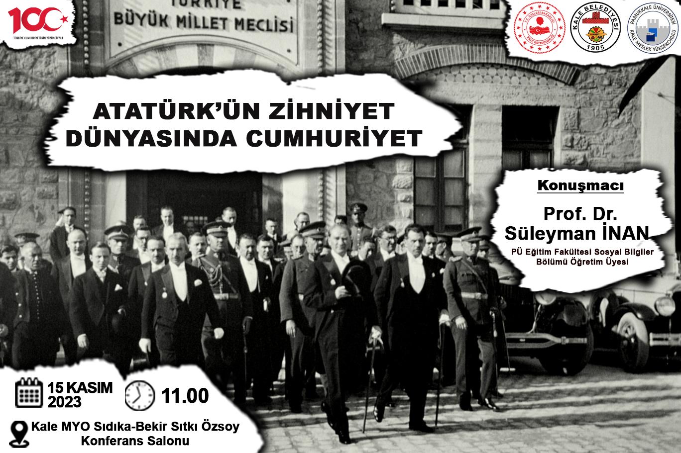 Atatürk'ün Zihniyet Dünyasında Cumhuriyet Konferans 15 Kasım 2023 Kale Meslek Yüksekokulu Sahne Alanlar: Sıdıka-Bekir Sıtkı ÖZSOY Konferans Salonu