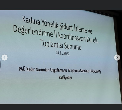 Kadına Yönelik Şiddet İzleme ve Değerlendirme İl Koordinasyon Kurulu Toplantısı Güncellenme Tarihi: 08 Aralık 2022 Valilikte düzenlenen Kadına Yönelik Şiddet İzleme ve Değerlendirme İl Koordinasyon Kurulu toplantısında Paü Kadın Sorunları Uygulama ve Araştırma Merkezinin faaliyetleri hakkında sunum gerçekleştirildi.