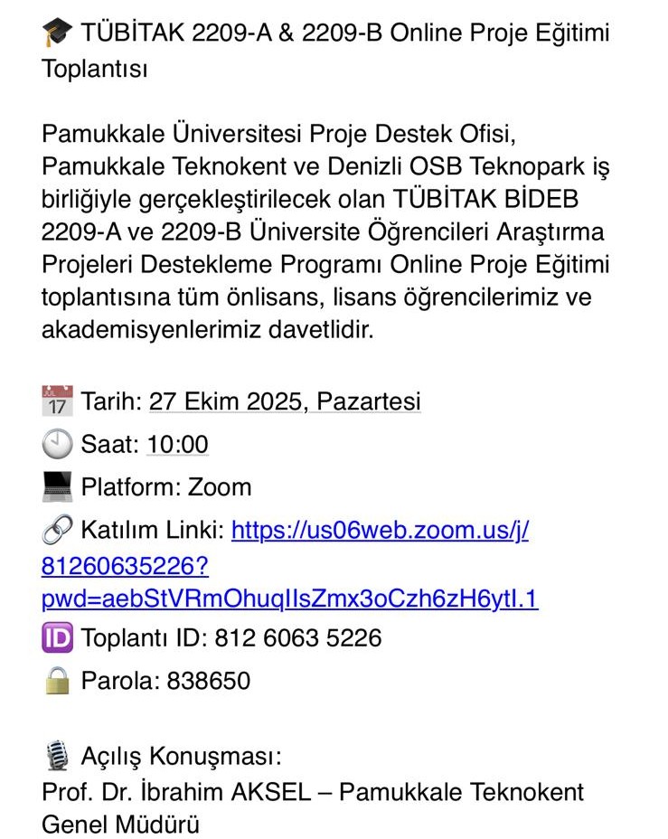 TÜBİTAK 2209-A ve 2209-B Online Proje Eğitimi Toplantısı