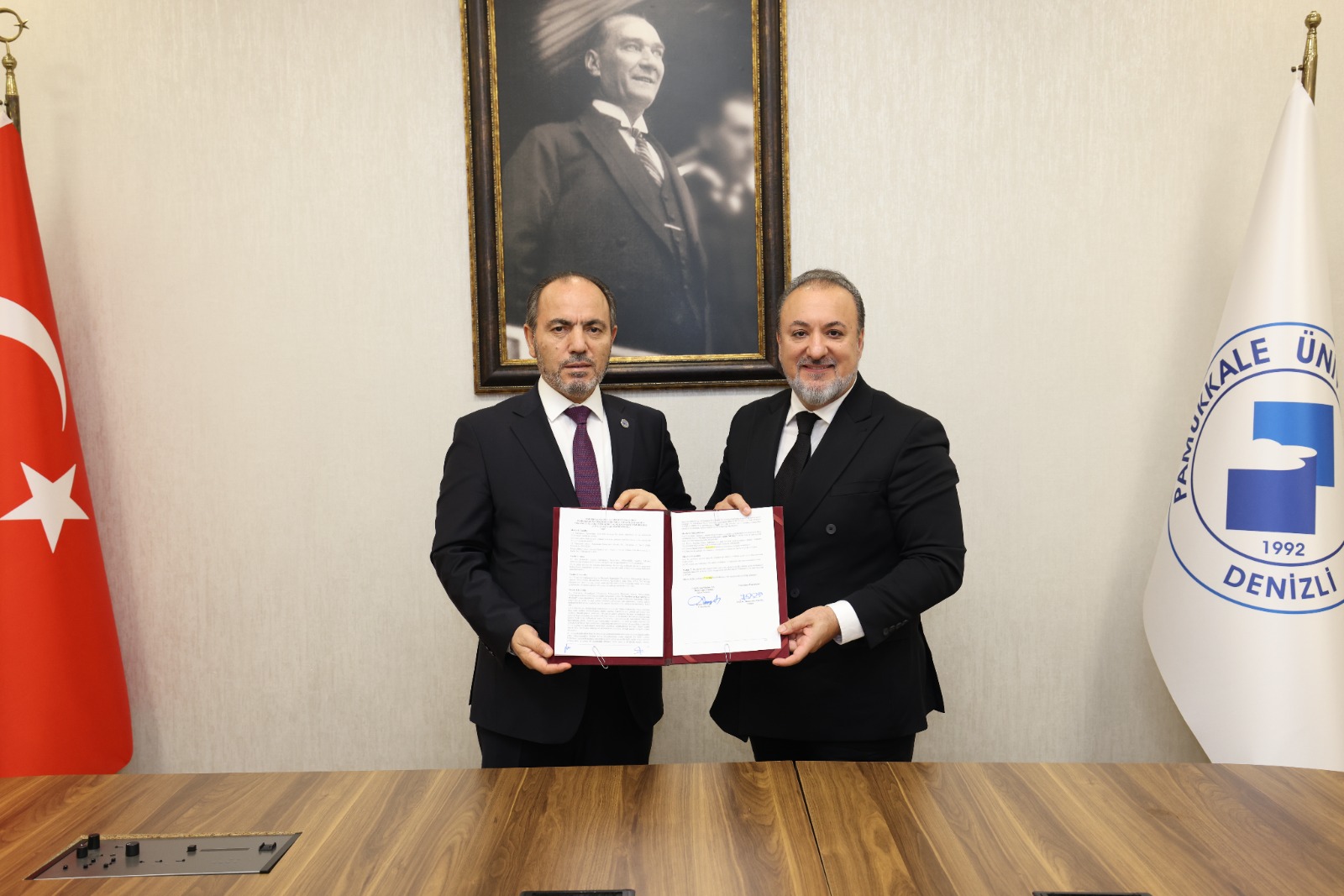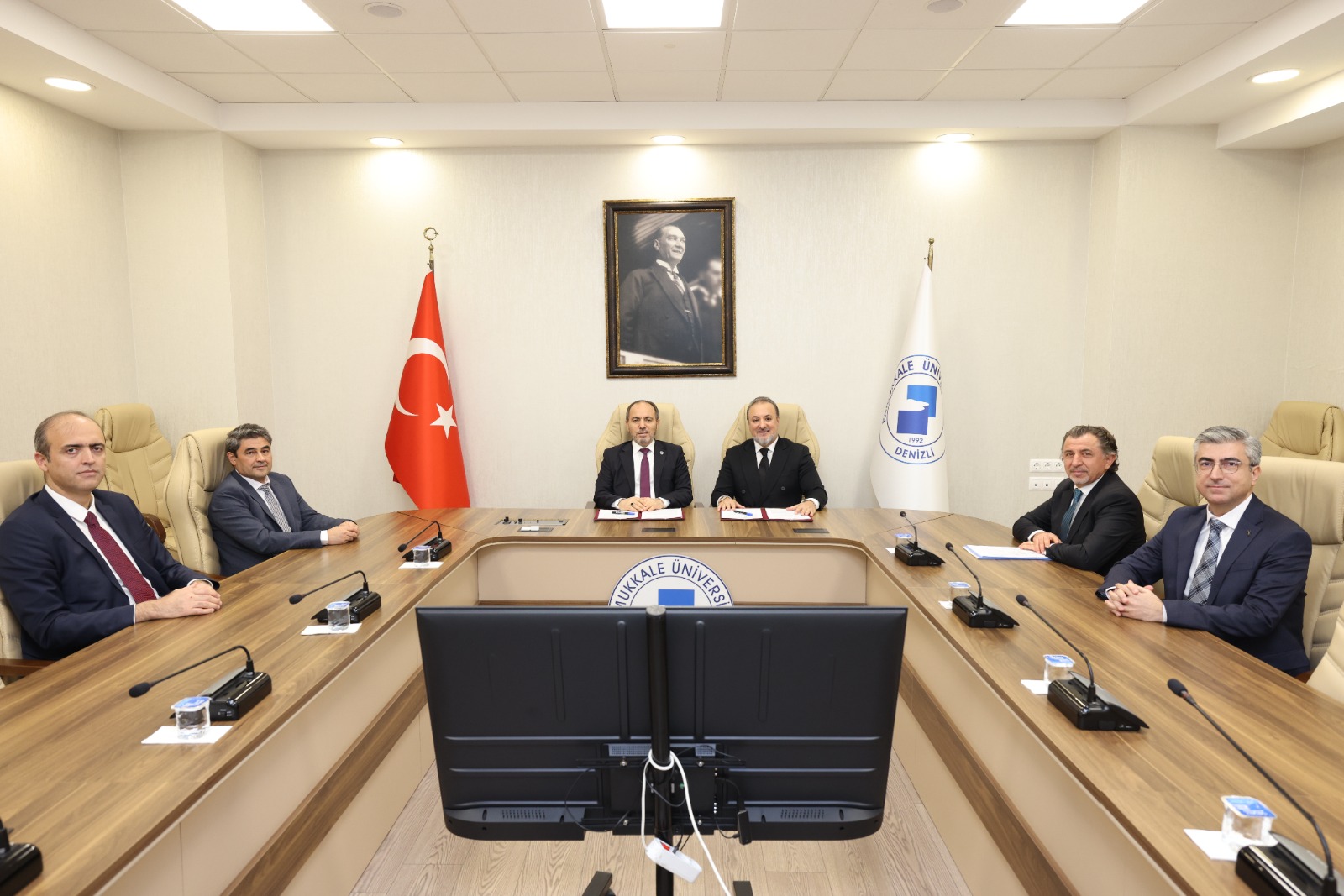 Pamukkale Üniversitesi Mühendislik Fakültesi Makine Mühendisliği Bölümümüz bünyesinde kurulacak Kaynak Eğitim Merkezine ilişkin protokol, Pamukkale Üniversitesi adına Rektörümüz Sayın Prof. Dr. Mahmud GÜNGÖR ile EMS Erhan Makina A.Ş. Sahibi Sayın Erhan BOYVAT arasında imzalandı. Protokol imza törenine aynı zamanda Rektör Yardımcılarımız Sayın Prof. Dr. Mehmet İNEL, Sayın Prof. Dr. İbrahim TÜRKÇÜER, Mühendislik Fakültesi Dekanımız Sayın Prof. Dr. Sezai TOKAT ve Makine Mühendisliği Bölüm Başkanımız Sayın Prof. Dr. Cemal MERAN'da katıldılar. Rektörümüz imzalanan protokolün öğrencilerin uygulamalı eğitim imkânlarını güçlendireceğini ve üniversite-sanayi etkileşimine önemli katkı sunacağını ifade ederek, merkezin hayata geçirilmesine verdikleri destek dolayısıyla Erhan BOYVAT’a teşekkürlerini iletti.