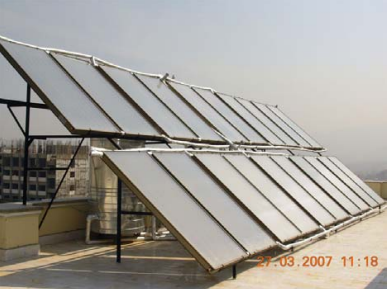 Evin ısı ihtiyacı toplam 40 m2 yüzey alanına sahip alüminyum ve bakır selektif yüzeyli güneş kollektörleri kullanılarak karşılanmaktadır (Şekil 1). Güneş enerjisi ile aktif ısıtmanın yanı sıra evin güney cephesinde yer alan Trombe duvarları ile pasif ısıtma desteği gerçekleştirilmektedir (Şekil 2).