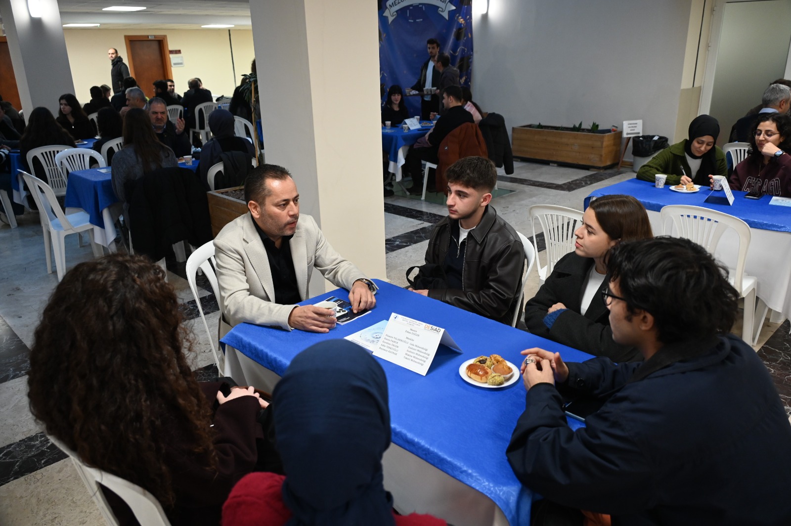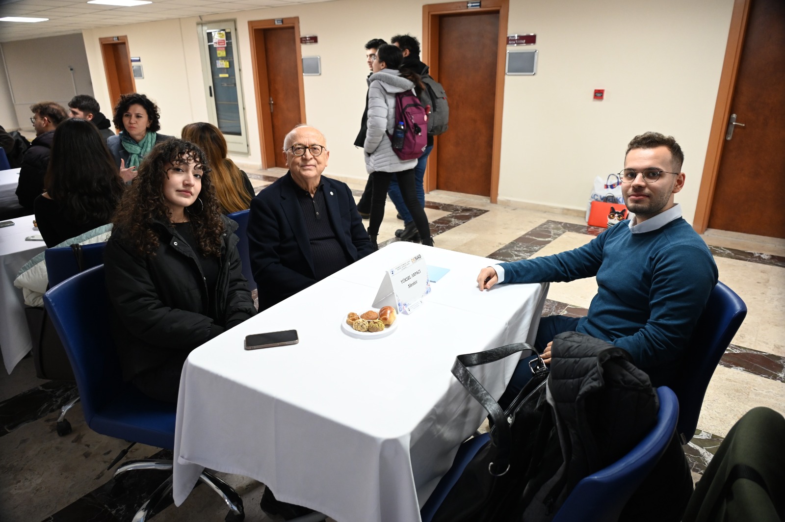 Açılış konuşmalarının ardından etkinlik, Mühendislik Fakültesi fuaye alanında devam etti. Mentör ve mentiler, hazırlanan masalarda bir araya gelerek ilk görüşmelerini gerçekleştirdi.