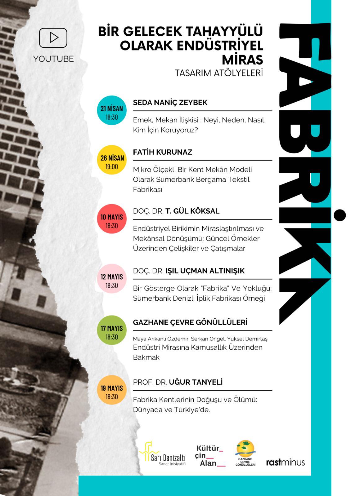 "Bir Gelecek Tahayyülleri Olarak Endüstriyel Miras Tasarım Atölyeleri" için düzenlenen seminerler dizisinin dördüncüsünde Doç. Dr. Işıl UÇMAN ALTINIŞIK'ın "Bir gösterge olarak 'Fabrika' ve yokluğu: Sümerbank Denizli İplik Fabrikası Örneği" sunumu yer almıştır. (Sunum kaydı; https://www.youtube.com/watch?v=xGzjR2IImA8)