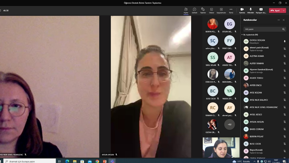 Başlık: Öğrenci Destek Birimi tanıtım toplantısı, fakülte öğretim elemanlarının katılımı ile 09.12.2022 tarihinde gerçekleştirilmiştir.
