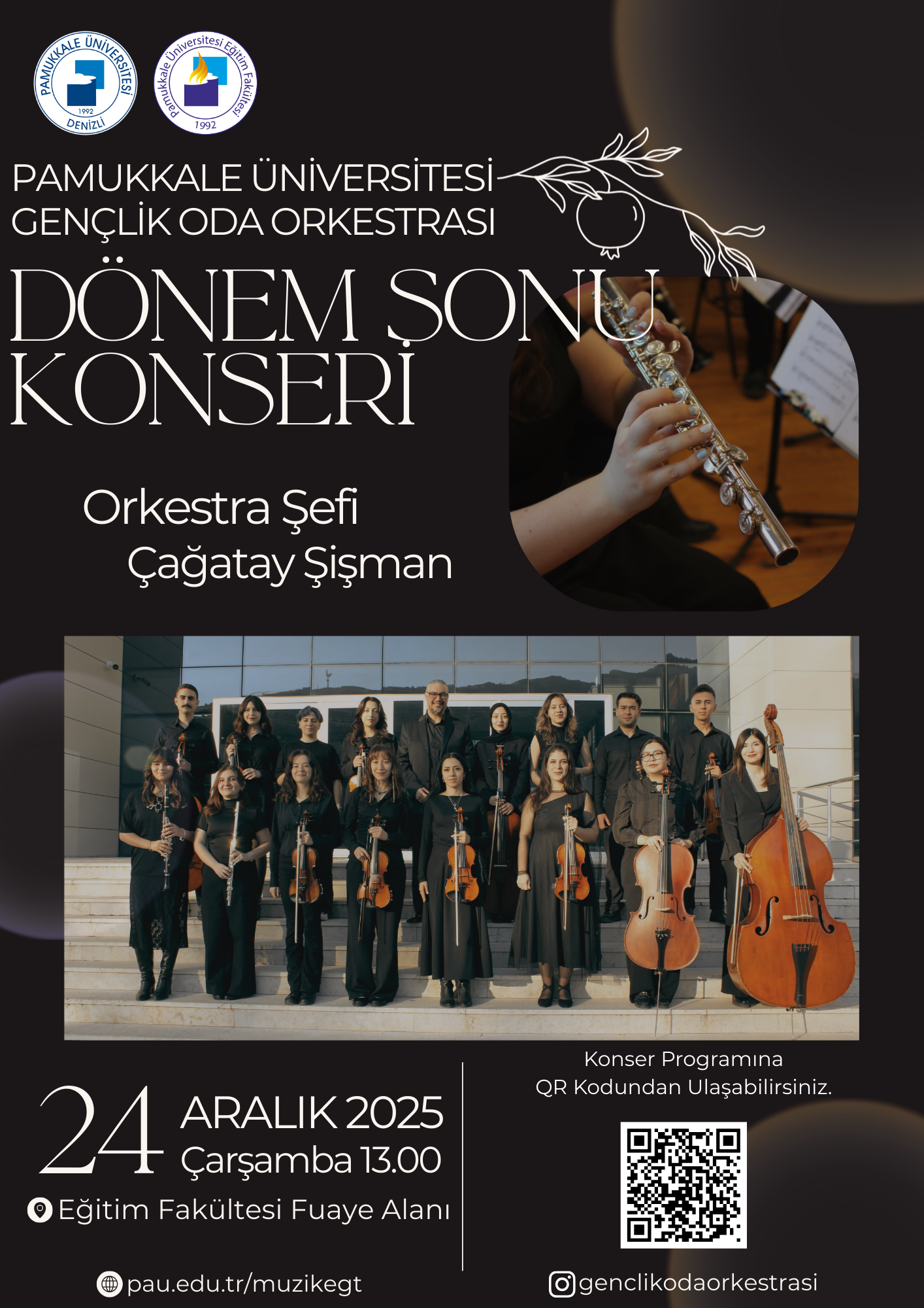 Pamukkale Üniversitesi Gençlik Oda Orkestrası Dönem Sonu Konseri Konser 24 Aralık 2025 PAÜ Eğitim Fakültesi Sahne Alanlar: Pamukkale Üniversitesi Gençlik Oda Orkestrası