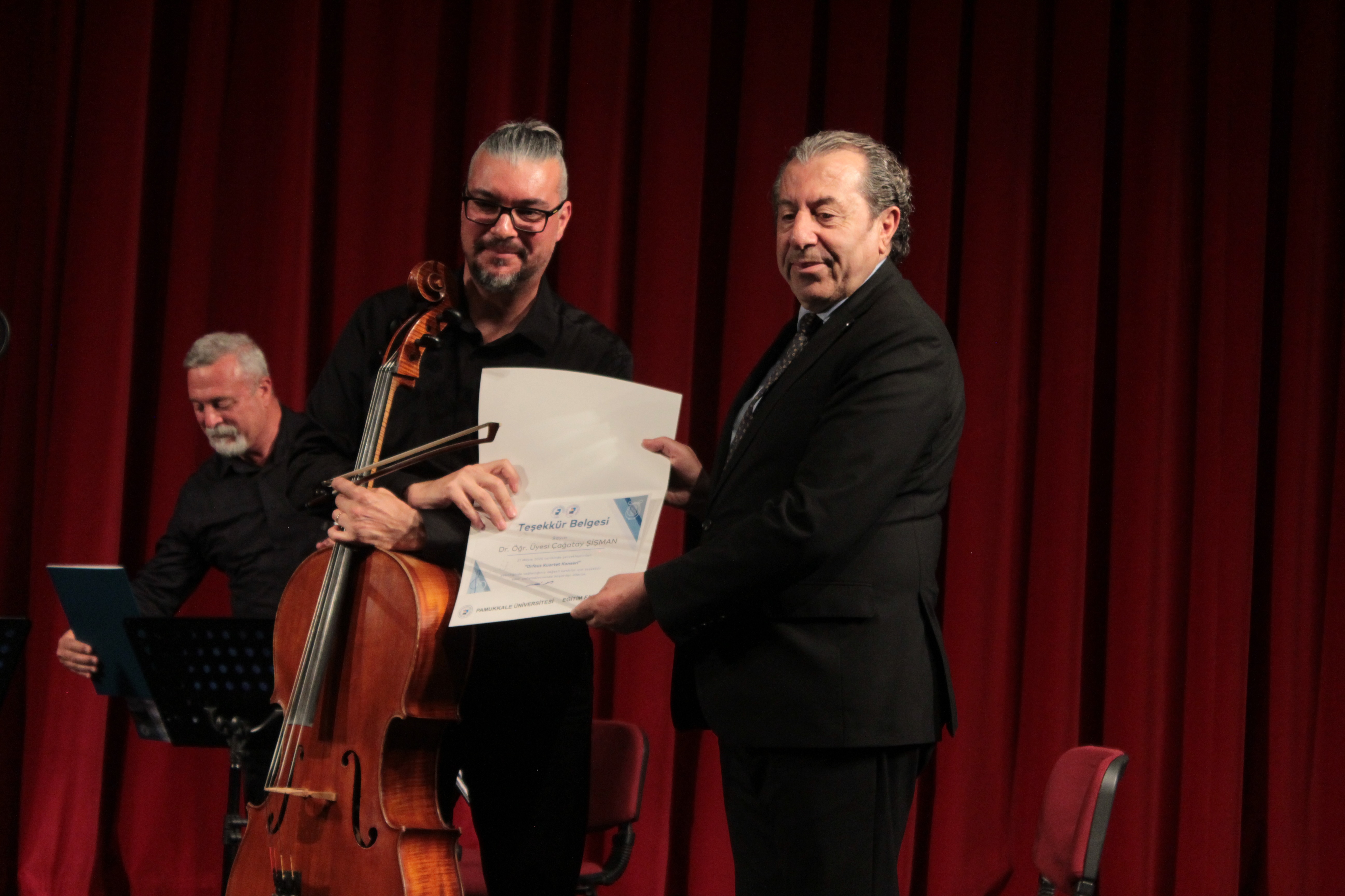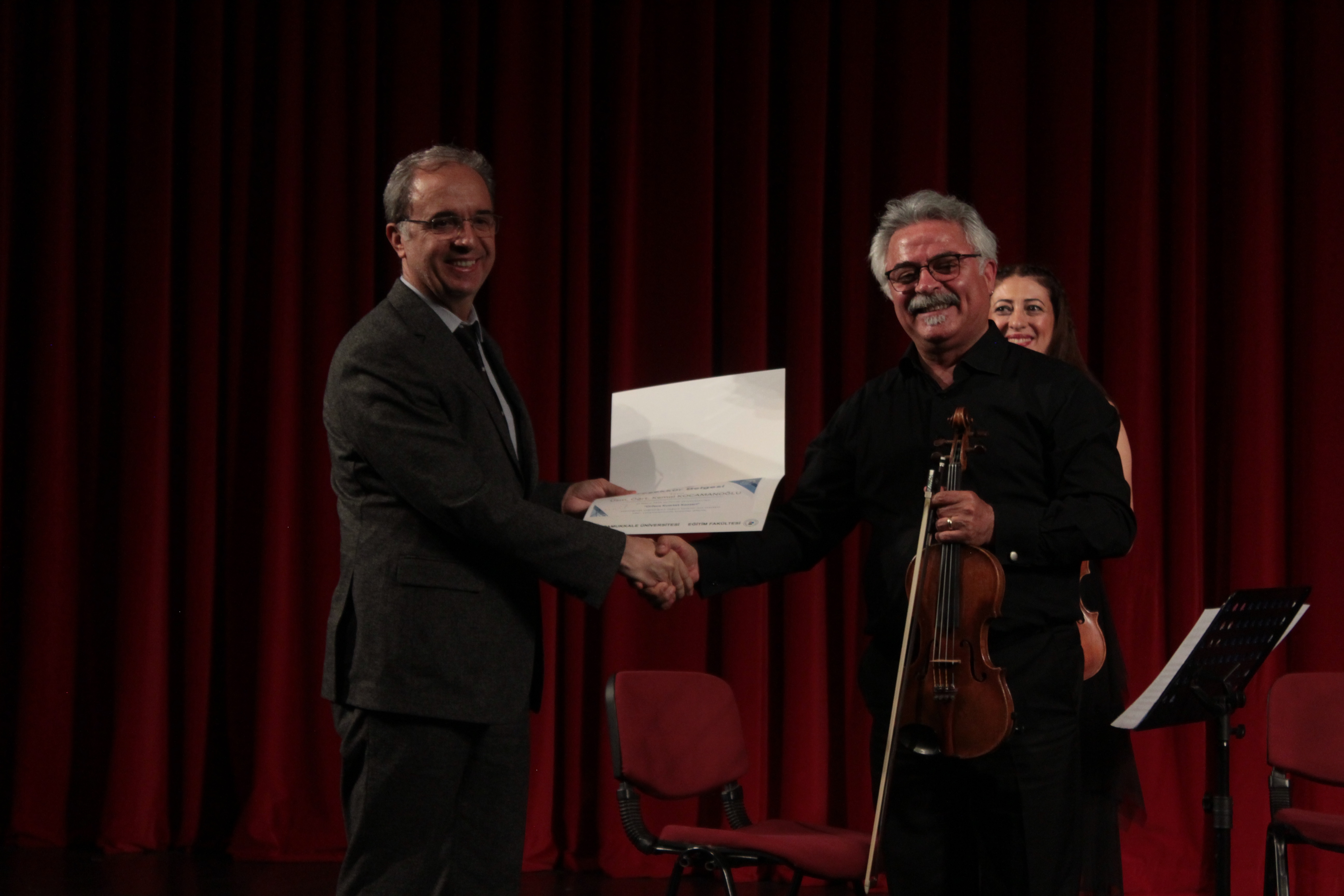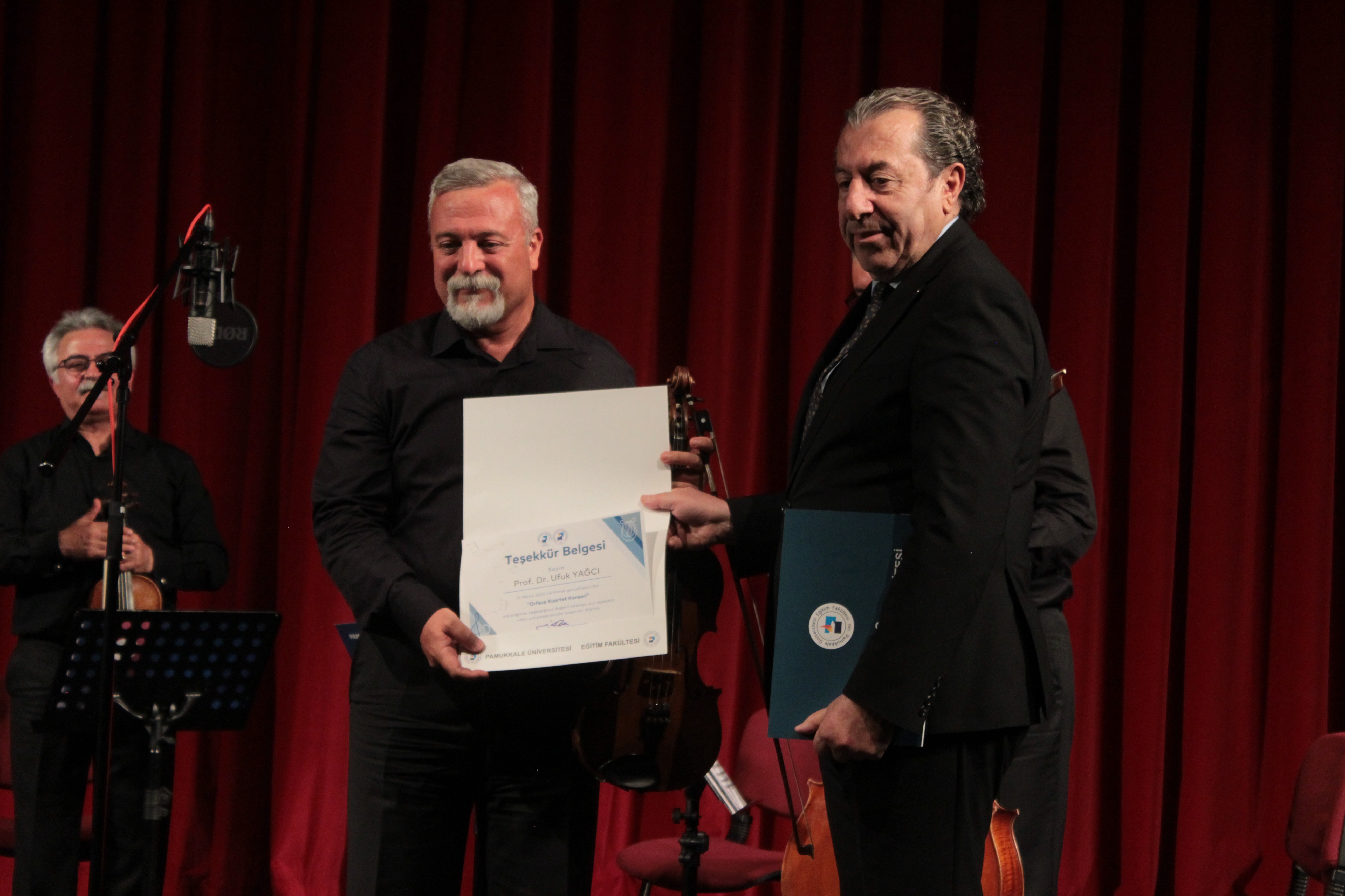 Program sonunda, Orfeus Kuartet üyelerine teşekkür belgeleri Eğitim Fakültesi Dekanı Prof. Dr. İzzet Kara ve Müzik ve Sahne Sanatları Fakültesi Dekanı Prof. Dr. Efe Akbulut tarafından takdim edildi.
