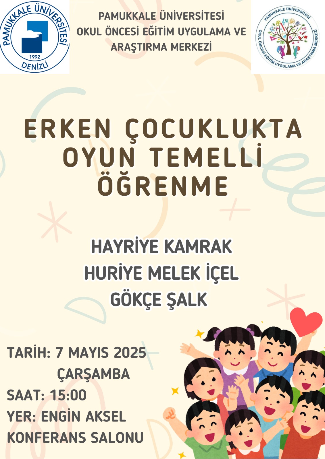 Pamukkale Üniversitesi Okul Öncesi Eğitim Uygulama ve Araştırma Merkezi tarafından düzenlenen "Erken Çocuklukta Oyun Temelli Öğrenme" etkinliğine davetlisiniz!
