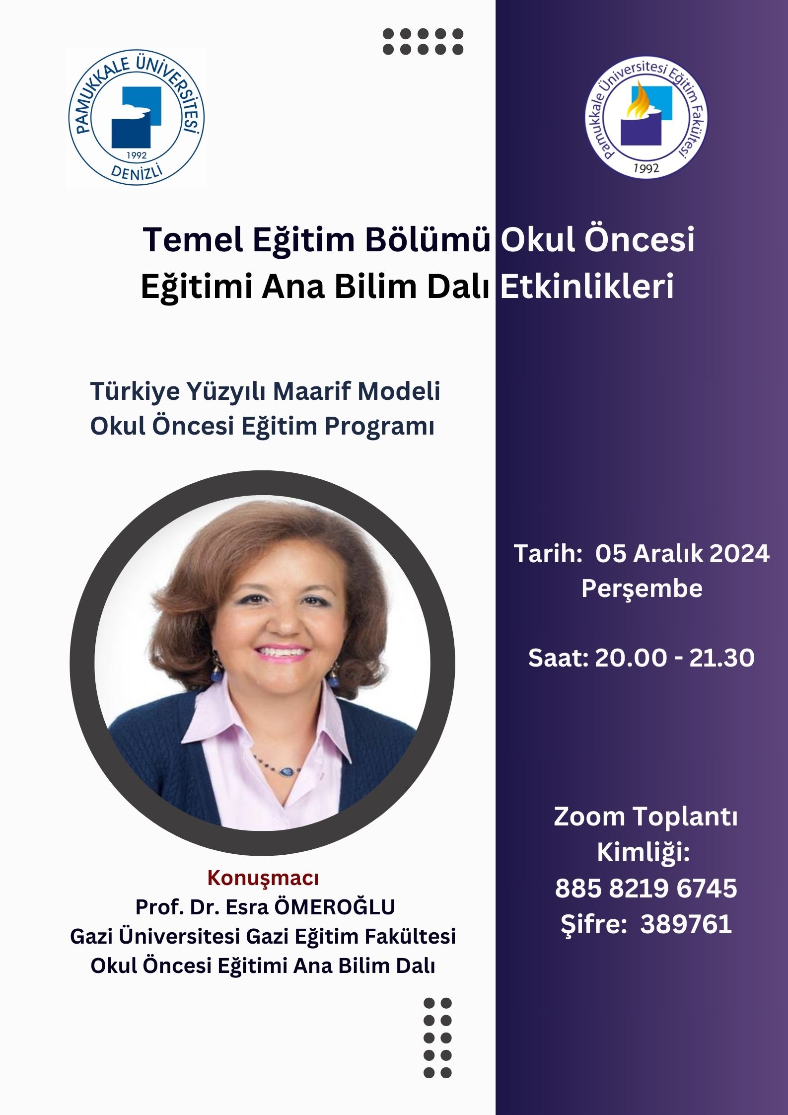 Türkiye Yüzyılı Maarif Modeli Okul Öncesi Eğitim Programı Seminer 02 Aralık 2024 - 09 Aralık 2024 Online