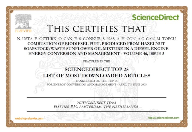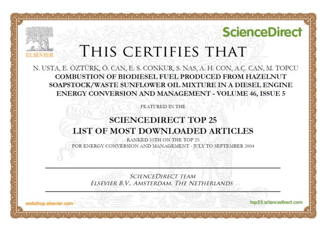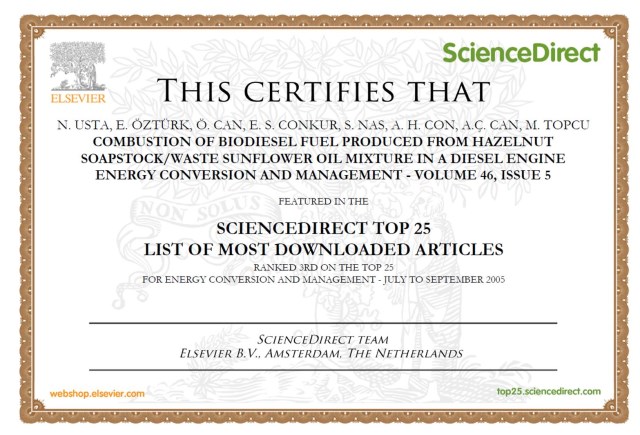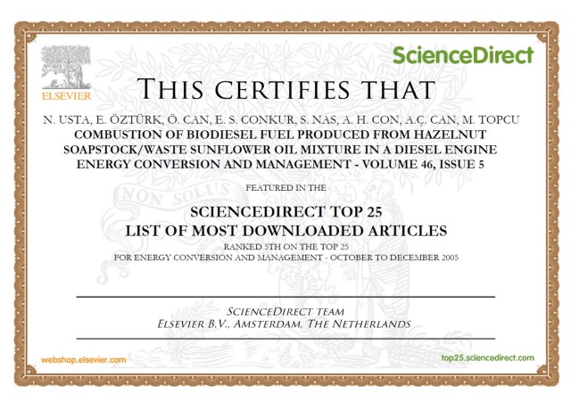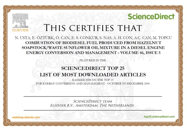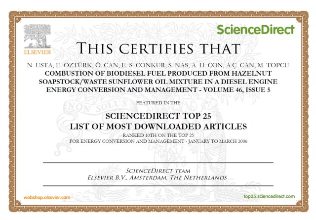 ScienceDirect Top 25 listesinde 15. sırada yeralmıştır. (Link)