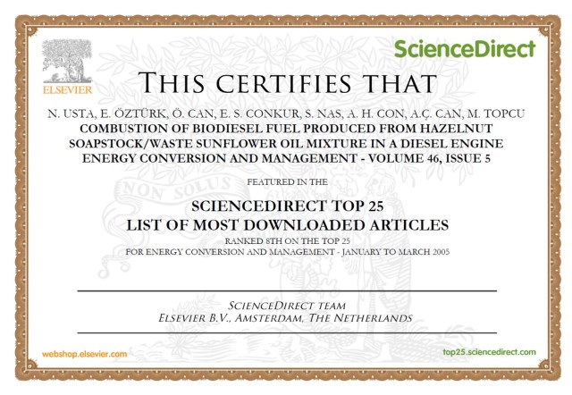 ScinceDirect Top 25 listesinde 8. sırada yeralmıştır. (Link)