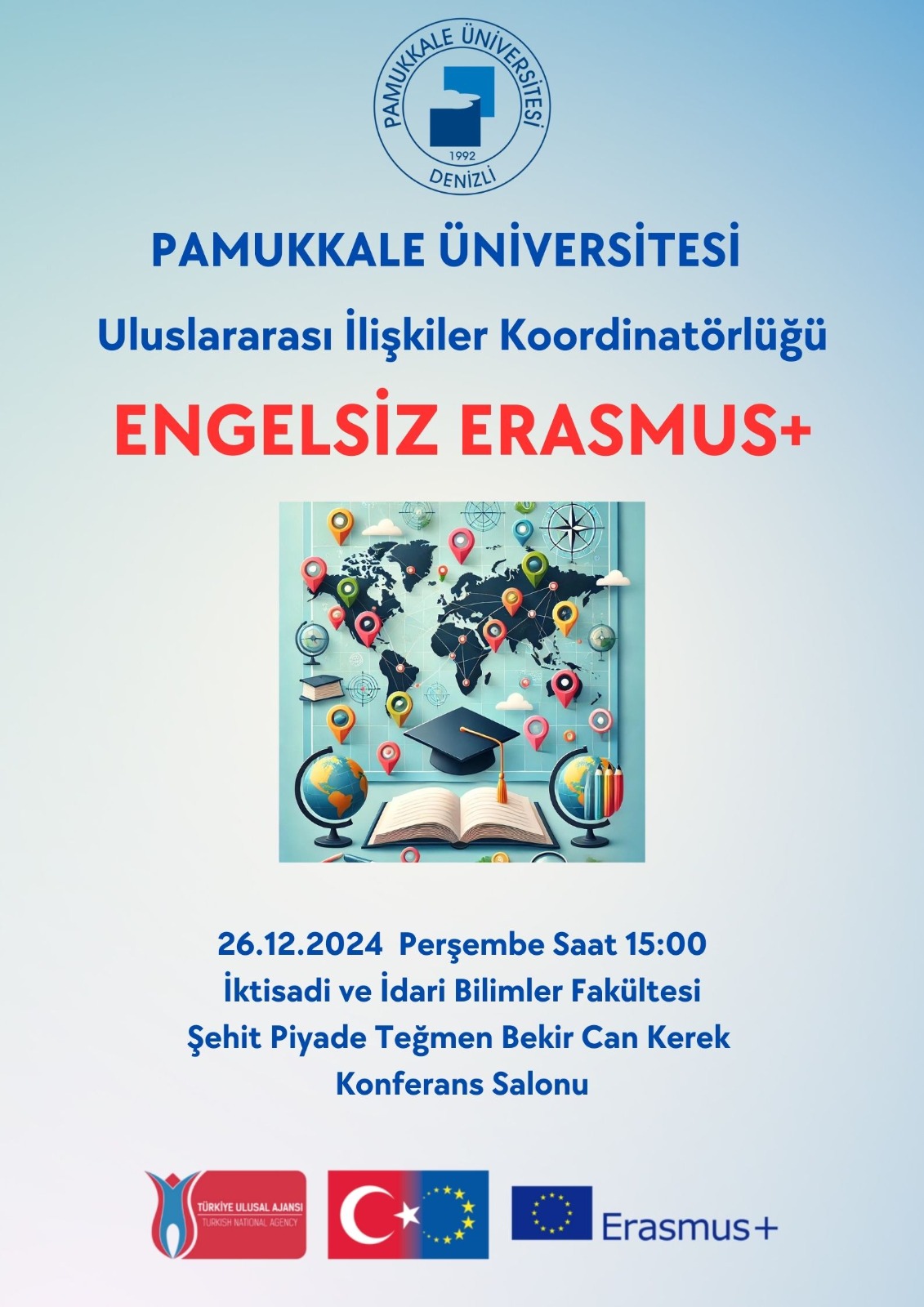 Pamukkale Üniversitesi Uluslararası İlişkiler Koordinatörlüğü tarafından düzenlenen Engelsiz Erasmus+ Bilgilendirme Toplantısı'na davetlisiniz!