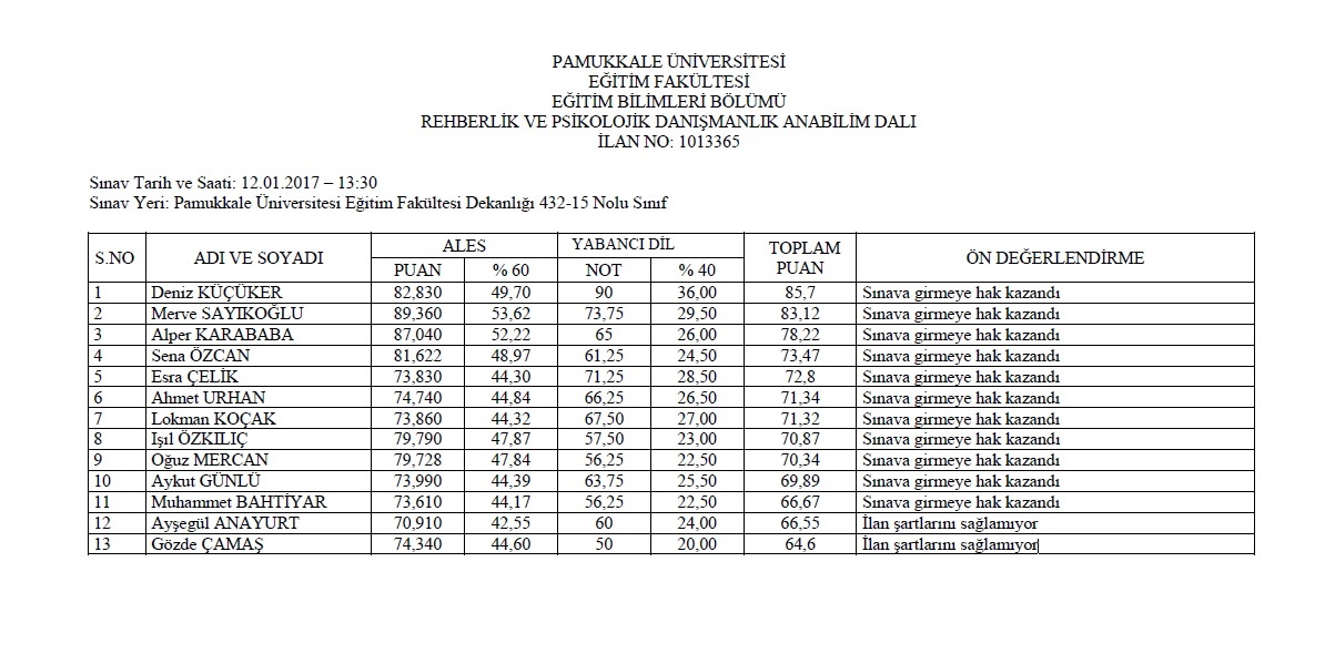 1013356 Eğitim Bilimleri Enstitüsü / Eğitim Bilimleri / Rehberlik ve Psikolojik Danışmanlık / Araştırma Görevlisi