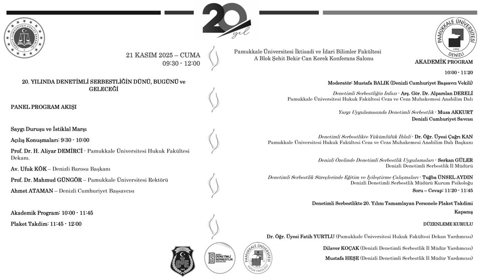 20. Yılında Denetimli Serbestliğin Dünü, Bugünü ve Geleceği Panel 21 Kasım 2025 İİBF A BLOK KONFERANS SALONU