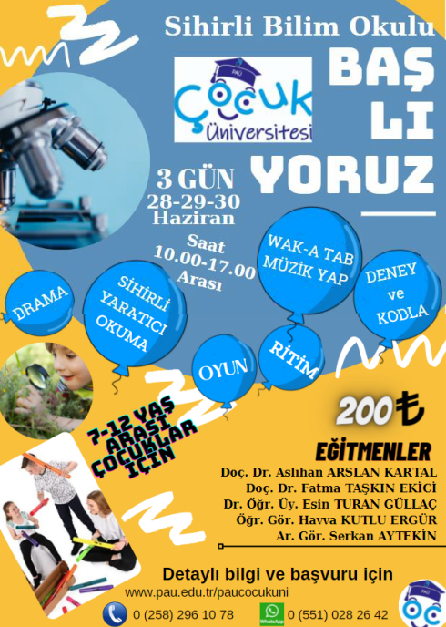 PAÜ Çocuk Üniversitesi - Sihirli Bilim Okulu Başlıyor... Eğitim 28 Haziran 2021 - 30 Haziran 2021 PAÜ https://www.pau.edu.tr/paucocukuni