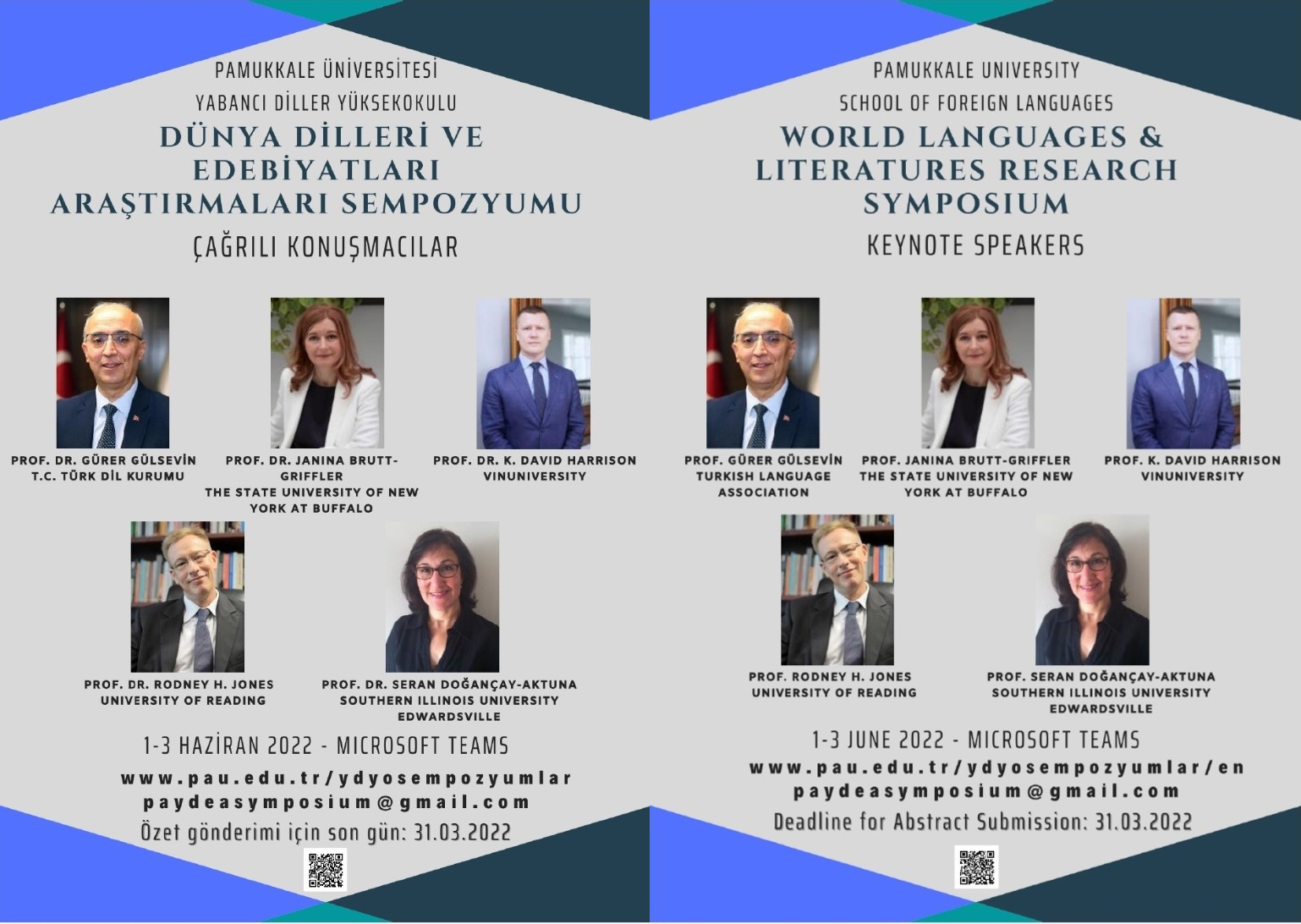 Yabancı Diller Yüksekokulu olarak sizleri 01-03 Haziran 2022 tarihleri arasında ilkini düzenleyeceğimiz Dünya Dilleri ve Edebiyatları Araştırmaları Sempozyumu’nda aramızda görmekten kıvanç duyarız. Amacımız; Dünya Dilleri ve Edebiyatları alanının farklı kollarında çalışmalar yapan bilim insanlarını bir araya getirerek bu alanda meydana gelen gelişmeleri, yenilikleri ve sorunları ele almak, bilim insanlarının bilgi ve birikimlerini paylaşarak mevcut sorunlara çözüm önerileri sunabilecekleri bilimsel bir ortam hazırlamaktır. Bu amaç doğrultusunda her iki yılda bir çevrimiçi olarak düzenlemeyi planladığımız sempozyumumuza: