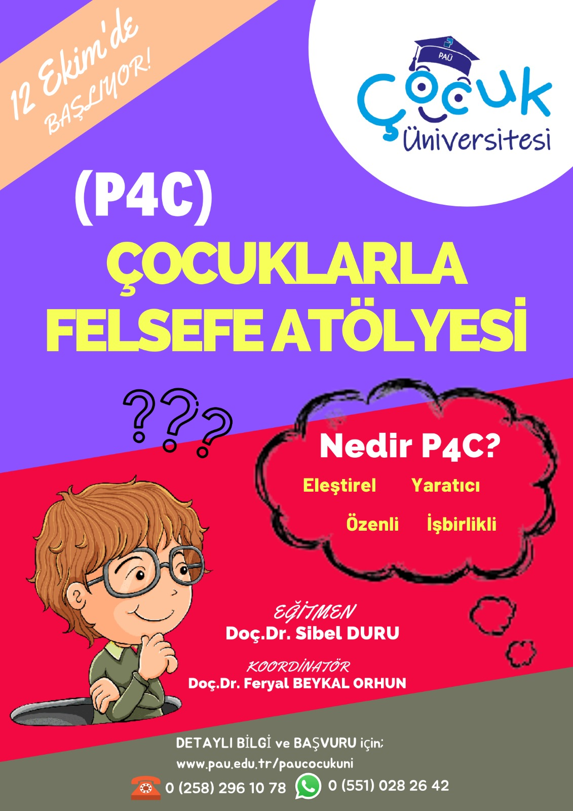 PAÜ Çocuk Üniversitesi - "Çocuklarla Felsefe Atölyesi" Etkinlik 12 Ekim 2021 - 19 Ekim 2021 PAÜ https://www.pau.edu.tr/paucocukuni