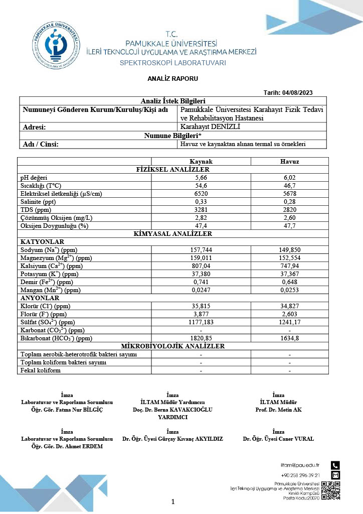 Termomineralli Kaplıca Sularımızın Fiziksel, Kimyasal ve Mikrobiyolojik Analiz Sonuçları
