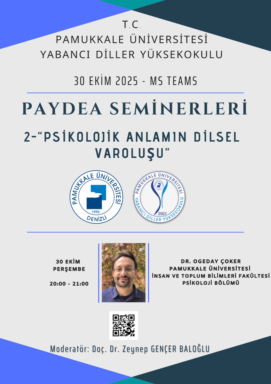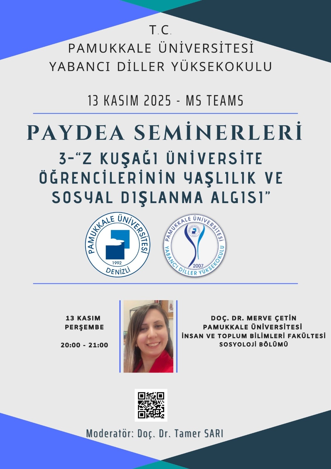 Yüksekokulumuz Akademik ve Sosyal Aktivite Koordinatörlüğü olarak, 2025-2026 Eğitim Öğretim Yılı Güz Dönemi PAYDEA seminerlerinin konuları kararlaştırılmış olup Microsoft Teams platformu üzerinden çevrimiçi düzenlenecektir. Bu kapsamda gerçekleştirmeyi planladığımız etkinliklerin detayları aşağıdaki tabloda yer almaktadır.