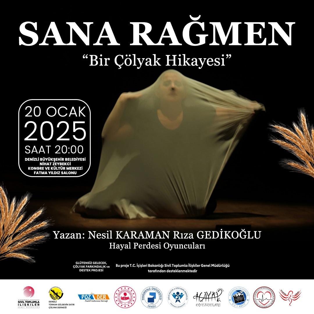 Hemşirelikte Birlik ve Farkındalık Topluluğu, 3-2-1 Kayıt Film ve Sinema Topluluğu ve Denizli Türkan Gülsevin Satır Çölyak Derneği ile birlikte T.C. İçişleri Bakanlığı Sivil Toplumla İlişkiler Genel Müdürlüğü tarafından desteklenen "Glütensiz Gelecek, Çölyak Farkındalık ve Destek Projesi" kapsamında tiyatro topluluğu Hayal Perdesi oyuncuları olarak Sana Rağmen adlı tiyatro oyunu sergilendi. Etkinlik, Nihat Zeybekci Kongre ve Kültür Merkezi'nin Fatma Yıldız Salonu'nda gerçekleştirilmiştir.
