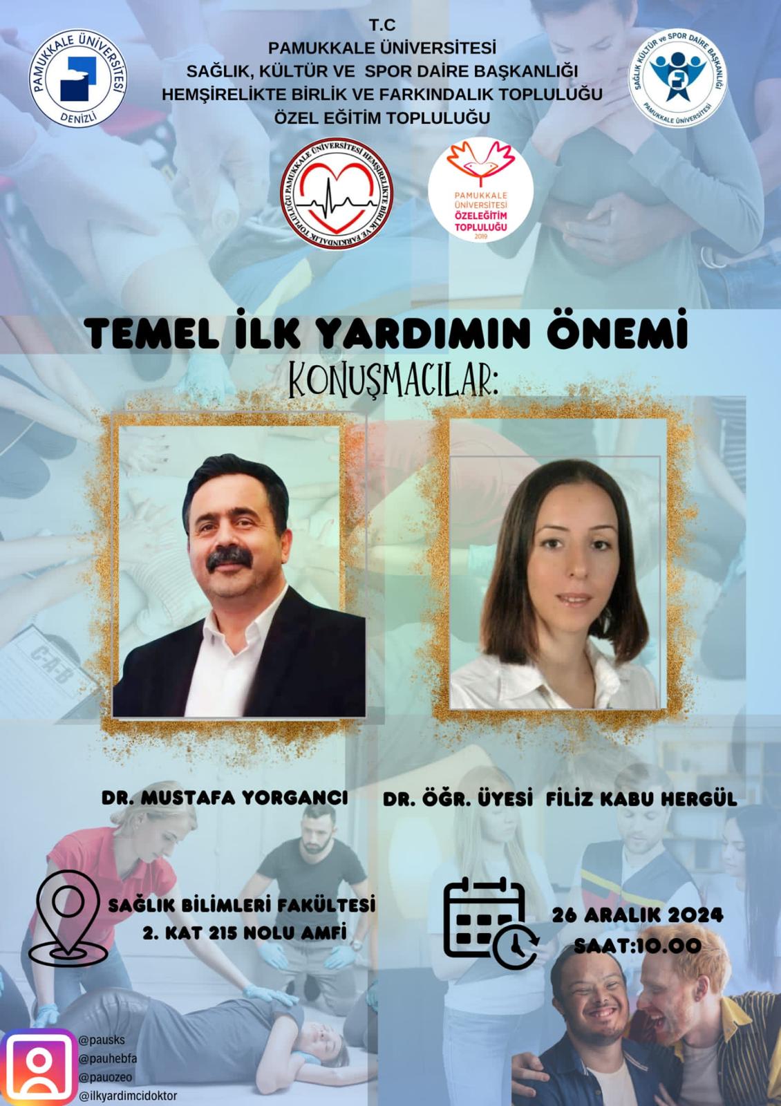 Hemşirelikte Birlik ve Farkındalık Topluluğu ve Özel Eğitim Topluluğu olarak üyelerimizle, hocalarımız Öğr. Üyesi Dr. Filiz Kabu Hergül ve Dr. Mustafa Yorgancı eşliğinde ilk yardımda doğrular ve yanlışları öğrenip temel seviye ilk yardım bilgisi kazandık.