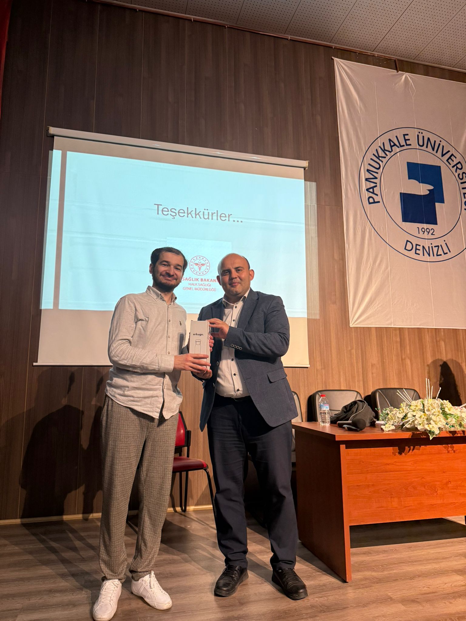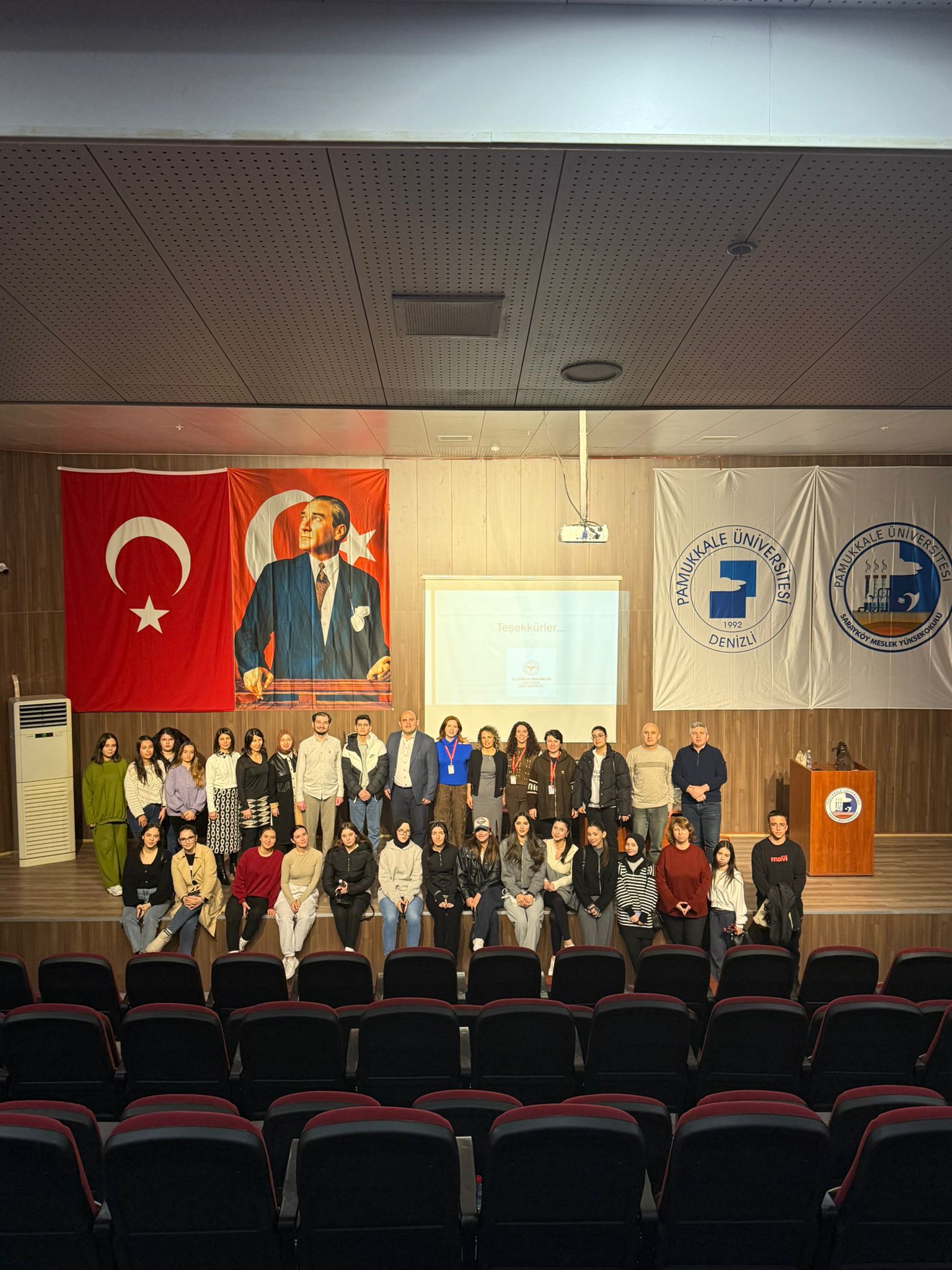 Sarayköy İlçe Sağlık Müdürlüğü'nün katkılarıyla düzenlenen etkinlikte Dr Erkan Barış`ın sunumuyla Sağlık Okuryazarlığı Farkındalık Semineri gerçekleştirildi. Seminerde toplumumuzda sağlık okuryazarlığının düşük olduğu ve günümüzde gitgide artan bilgi kirliliği vurgulanarak, bu konuda bilinçli hareket etmenin önemine değinildi. Programın ardından Dr. Erkan Barış'a okul müdürümüz Doç. Dr. Koray Şarkaya tarafından hediye takdim edildi. Hatıra fotoğrafı çekiminden sonra program sona erdi. Seminerdeki katkılarından dolayı Sarayköy İlçe Sağlık Müdürlüğü çalışanları Dr. Erkan Barış, Dt. Özen Şahin, Hatice Yalçın ve Esra Efecan`a teşekkürlerimizi sunuyoruz.