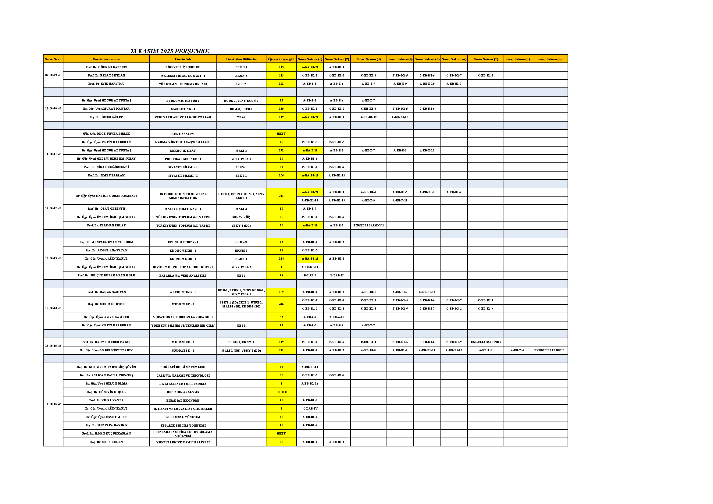 2025-2026 Güz Dönemi Vize Sınavı Derslikler (13 Kasım 2025 Perşembe) Güncellenme Tarihi: 13 Kasım 2025
