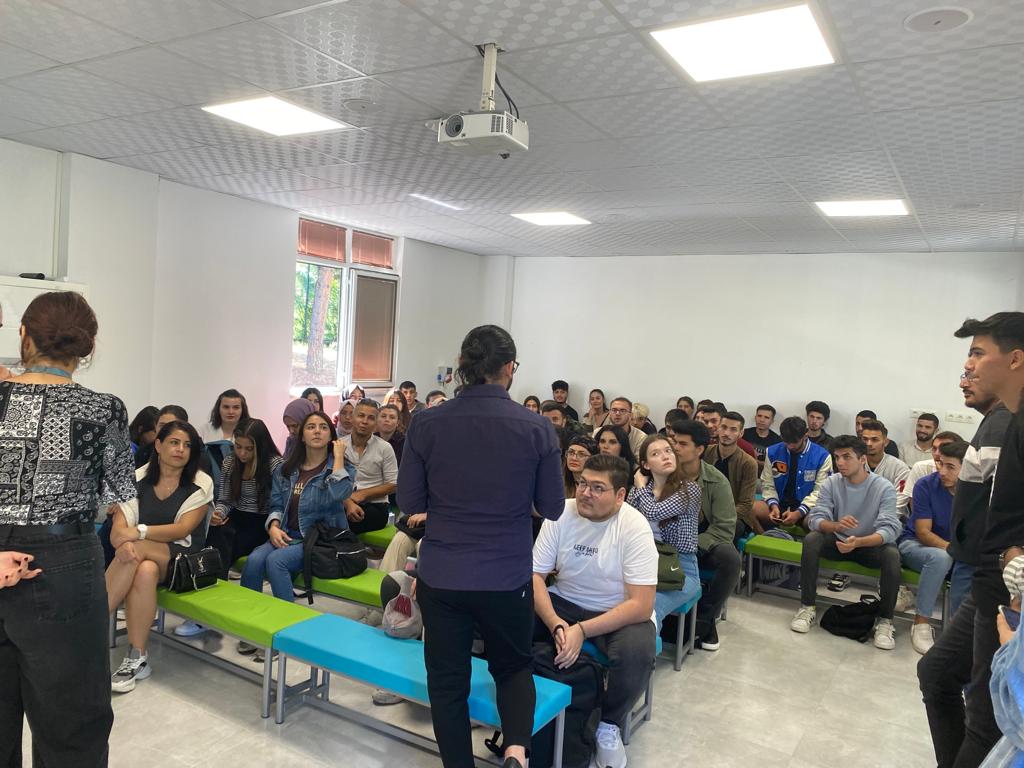 Toplantının ilk bölümünde, Topluluk danışmanı Öğr. Gör. Veli Ulaş ASMADİLİ, topluluk başkanı Muhammed KABAK ve başkan yardımcısı Aslıhan DUR yeni üyelere Turizm ve Seyahat Hizmetleri Topluluğu’nun misyon ve vizyonu hakkında bilgilendirme yapmış, hedeflenen etkinlik, seminer ve faaliyetleri dile getirerek, bu hedeflere üyelerin ortak katılımı ile ulaşılabilineceğinin altını çizdiler. Yapılacak her faaliyet ve etkinlikte alınacak ortak kararların önemli rol oynayacağı ve her üyenin görüş ve düşüncesinin ne denli önem arz ettiği vurgulandı.