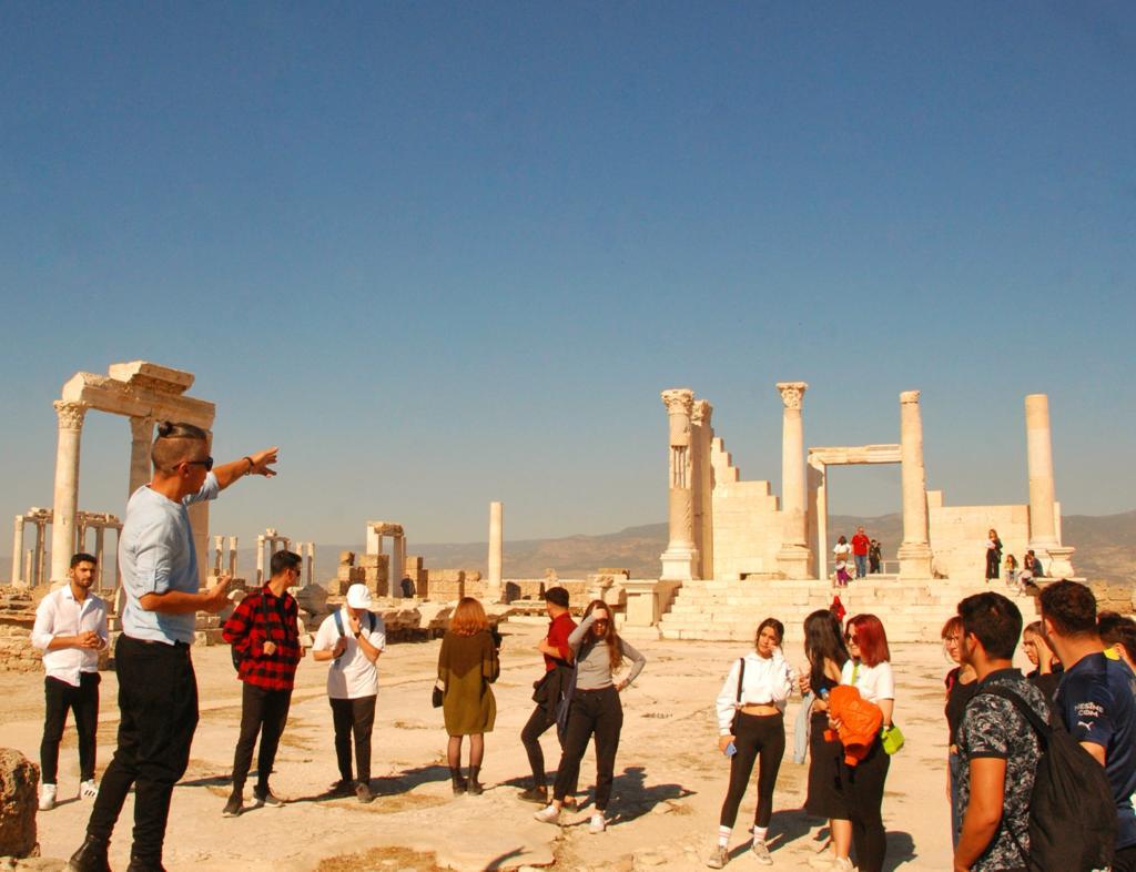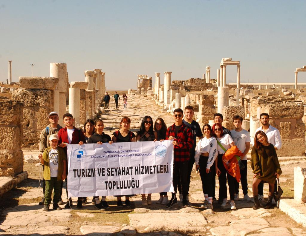 Turizm ve Seyahat Hizmetleri Topluluğu Leodikya Gezisi Güncellenme Tarihi: 27 Ekim 2022 Pamukkale Üniversitesi‘nin aktif topluluklarından kendi bünyesindeki turist rehberliği bölümü öğrencileriyle Leodikya gezisi gerçekleştirdi. Turist rehberliği öğrencilerinin Laodikya antik kentine gezi düzenleyerek Turizm ve Seyahat hizmetleri topluluğu üyelerini de davet ettiler. Topluluk başkan yardımcısı ve aynı zamanda Turist rehberliği bölümü öğrencisi Aslıhan DUR ve Turist rehberliği 1. sınıf öğrencisi Onur YOLLU hem kendilerini geliştirmek hem de geziye katılanlara yardımcı olabilmek için Laodikya antik kentini karış karış gezerek katılımcılara anlattılar. Anlatımlarıyla geziye katılanlardan büyük beğeni alan rehber adayları aynı zamanda genel kurulunda yer aldıkları Turizm ve Seyahat hizmetleri topluluğu ile gezilerin devamının gelecek olduğunu ve üniversitemizin en aktif topluluklarından biri olacaklarını söylediler. Turizm ve Seyahat hizmetleri topluluğu genel kurul üyeleri ve geziye katılan diğer öğrencilerle birlikte keyifli vakit geçirip beraber fotoğraf çekildi.