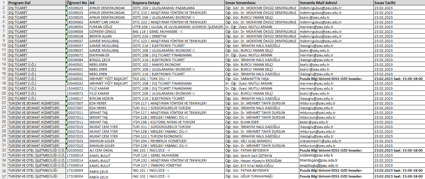 OZD haricinde sınavı olan öğrencilerimiz dersin sorumlu öğretim elemanına sınav programında yer alan mail adresi üzerinden üç ders sınavına gireceğine dair bir mail atarak iletişime geçmesi gerekmektedir.