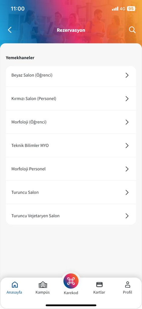 ADIM 3 : Gelen ekranda Öğrenci iseniz Öğrenci yazan, personel iseniz Personel yazan yemekhanelerden rezervasyon yaptırmak için üstüne tıklamanız gerekir.