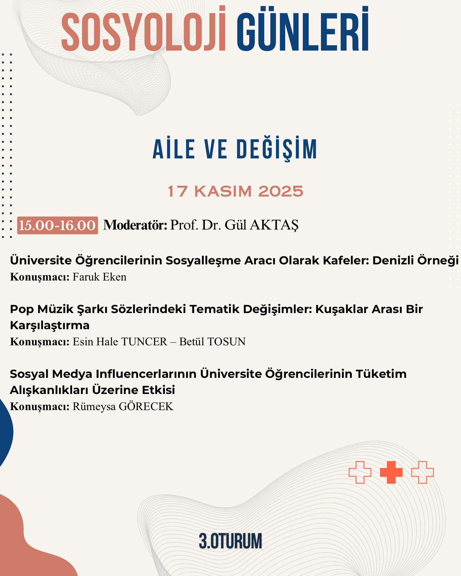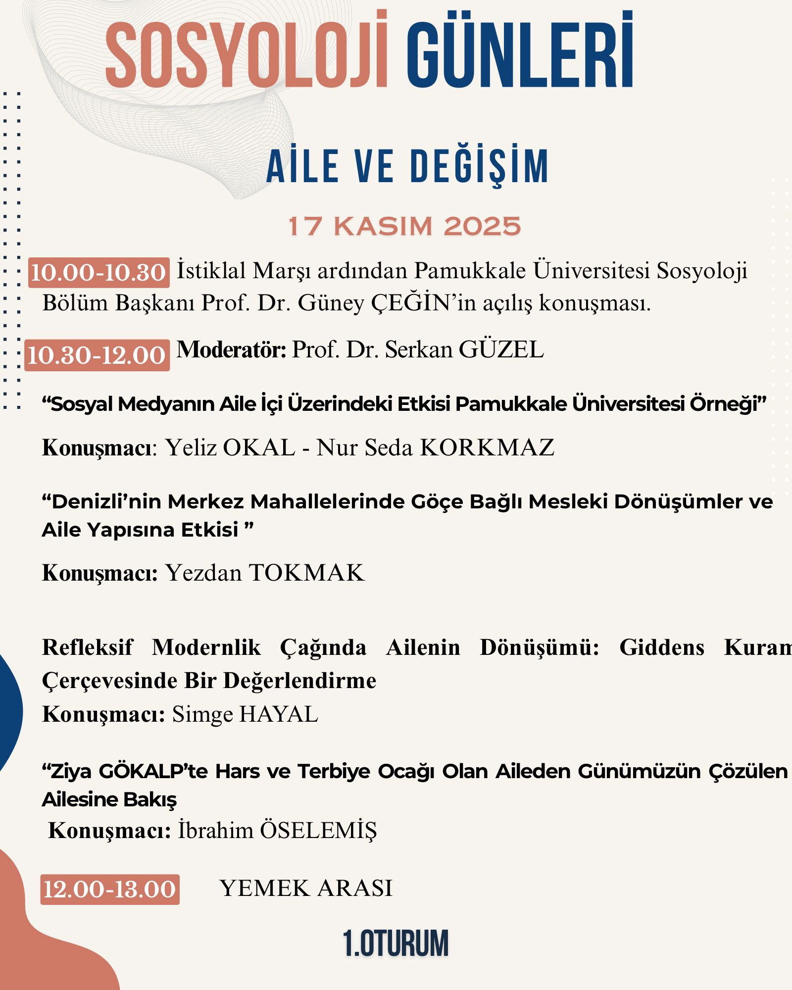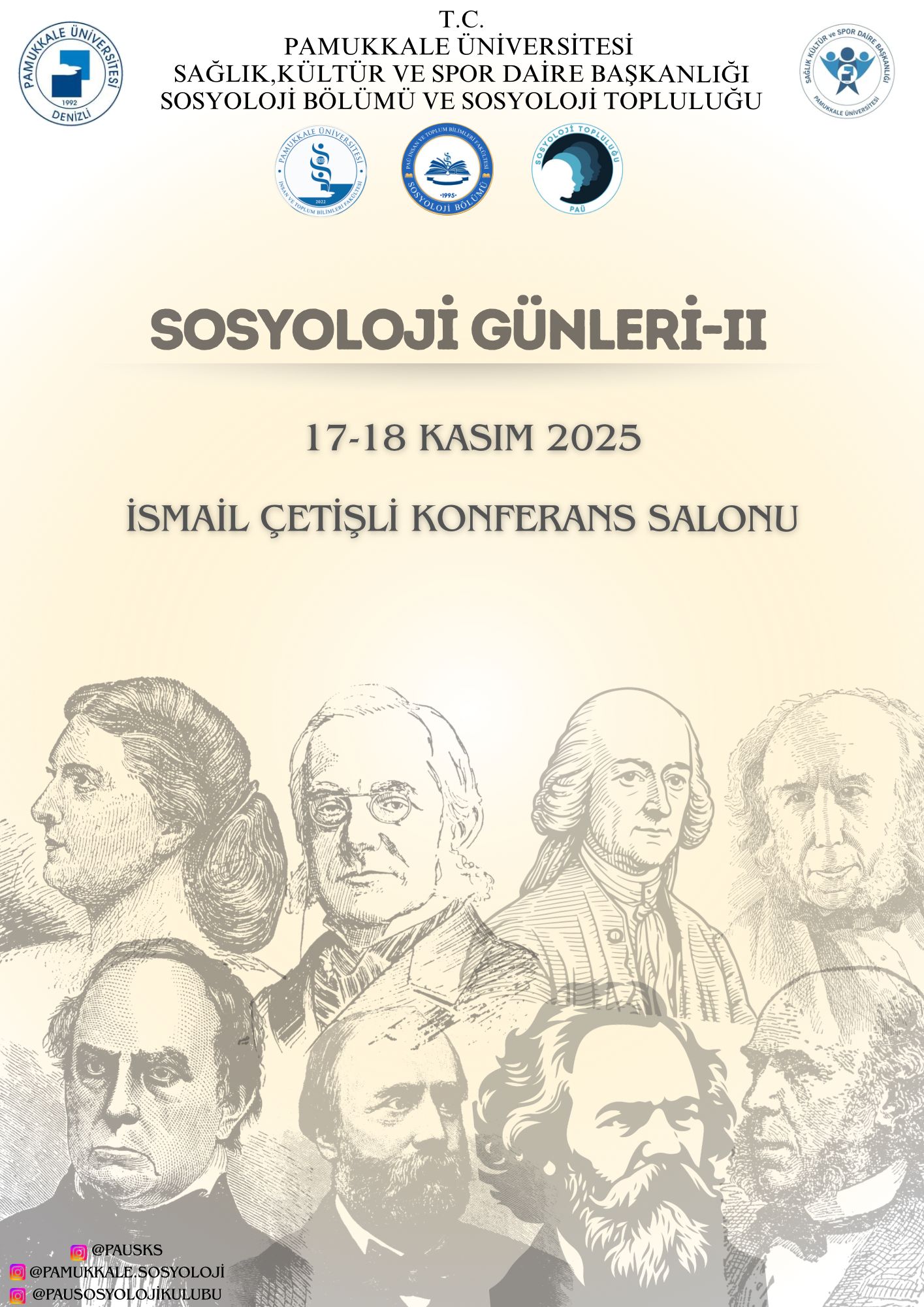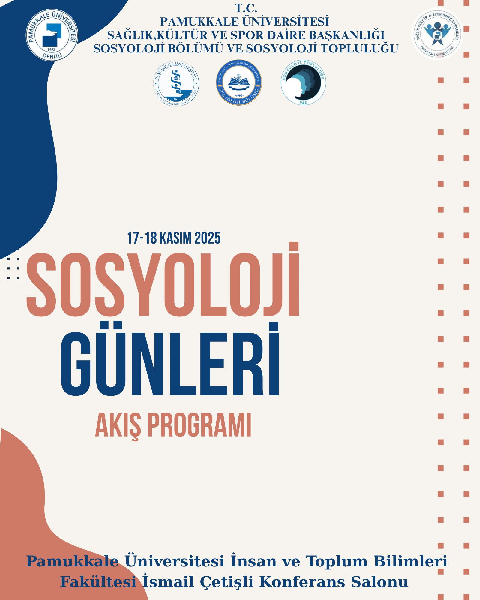 Sosyoloji Günleri II Sempozyum 17 Kasım 2025 - 24 Kasım 2025 İnsan ve Toplum Bilimleri Fakültesi Prof. Dr. İsmail Çetişli Konferans Salonu Organizatör: Sosyoloji Bölümü ve Sosyoloji Topluluğu Sosyoloji Bölümü ve Sosyoloji Topluluğu ortaklığında düzenlenen Sosyoloji Günleri II etkinliği 17-18 Kasım 2025 tarihinde gerçekleştirilecektir. Etkinlik tüm herkese açıktır.