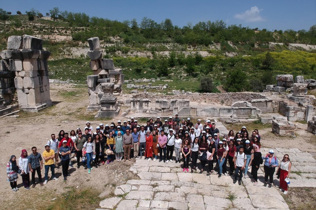 Pamukkale Üniversitesi Rektörü ve PAÜ'lü Yabancı Öğrenciler Stratonikeia antik kentini gezdi.