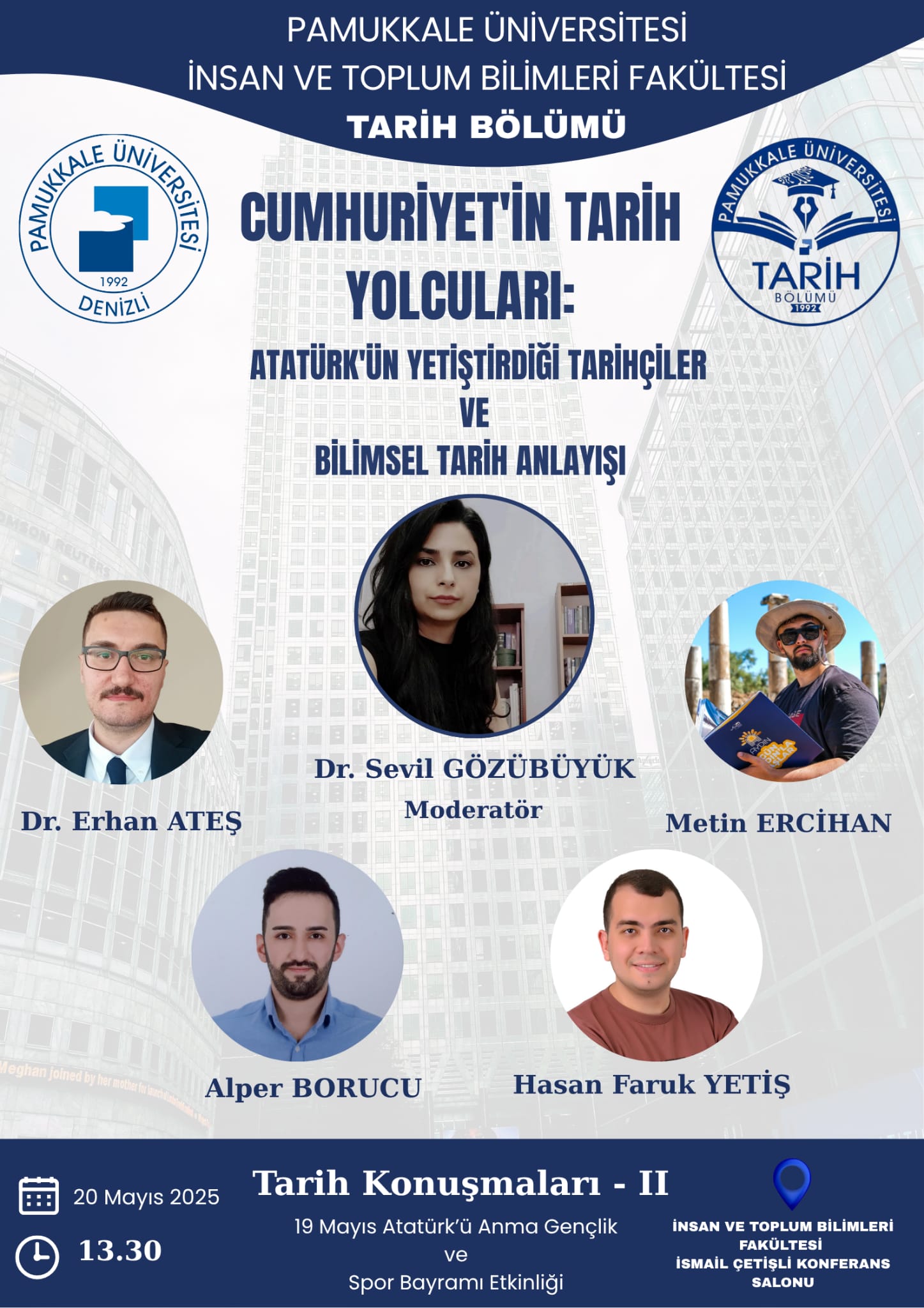 CUMHURİYET'İN TARİH YOLCULARI: ATATÜRK'ÜN YETİŞTİRDİĞİ TARİHÇİLER VE BİLİMSEL TARİH ANLAYIŞI Panel 20 Mayıs 2025 İnsan ve Toplum Bilimleri Fakültesi Prof. Dr. İsmail Çetişli Konferans Salonu