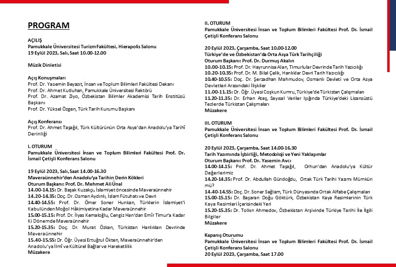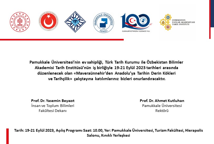 MAVERAÜNNEHİR'DEN ANADOLU'YA TARİHİN DERİN KÖKLERİ VE TARİHÇİLİK ÇALIŞTAYI Çalıştay 19 Eylül 2023 - 21 Eylül 2023 İnsan ve Toplum Bilimleri Fakültesi Prof. Dr. İsmail Çetişli Konferans Salonu