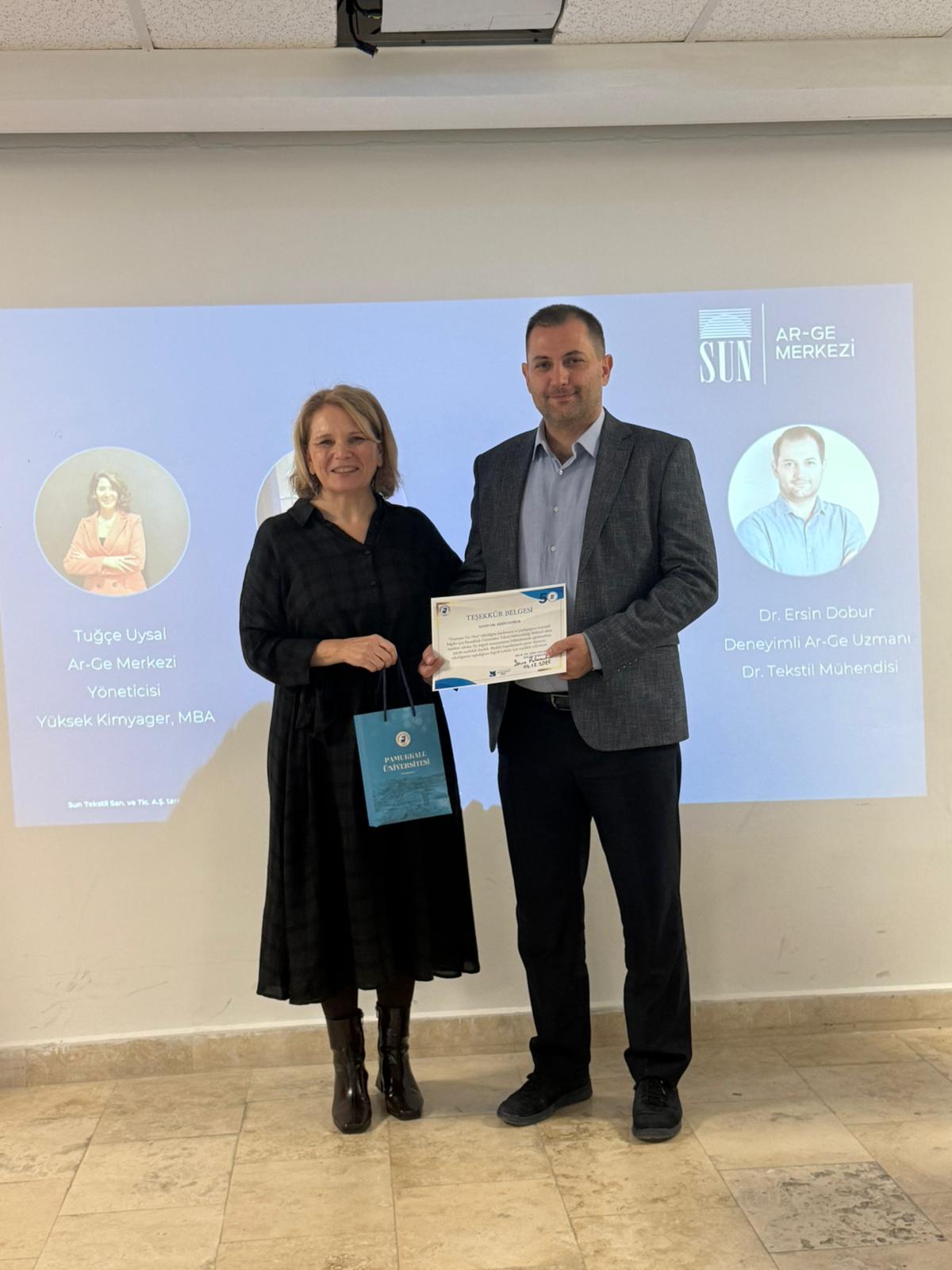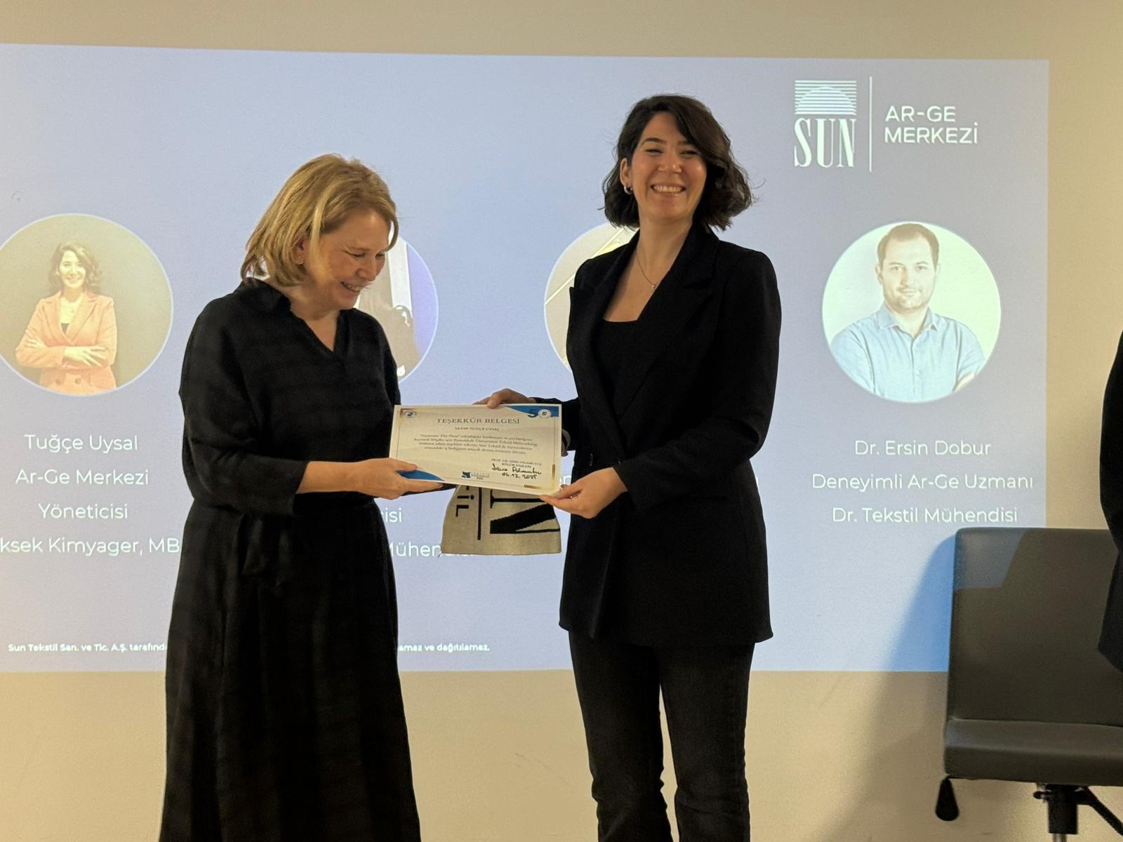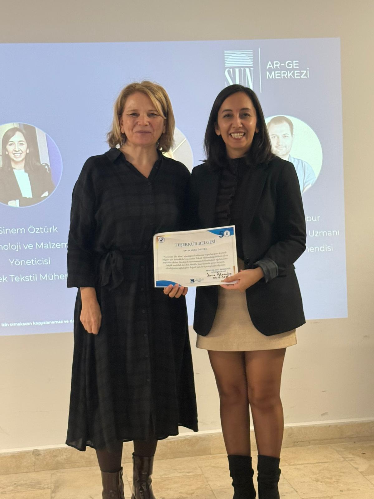 “Generate The Next” etkinliği gerçekleştirildi. Güncellenme Tarihi: 13 Aralık 2025 Fakültemizin kuruluşunun 50. yılında 50 etkinlik çerçevesinde 4 Aralık 2025 tarihinde Sun Tekstil Ar-Ge Merkezi'nin kıymetli yöneticileri ve uzmanlarının katılımları ile “Generate The Next” etkinliğini gerçekleştirdik. Değerli paylaşımları ve katılımları için Sayın Tuğçe Uysal’a , Sayın Sinem Öztürk’e, Sayın Gamze Tuna’ya ve Sayın Dr. Ersin Dobur’a tekrar teşekkür ediyoruz. Bu vesileyle, bölümüzün 2004 mezunu Dr. Ersin Dobur ve 2011 mezunu Sinem Öztürk’ü yeniden aramızda görmüş olmaktan büyük bir gurur duyduğumuzu da belirtmek isteriz. Verimli ve keyifli geçen etkinliğimizin ardından, Sun Tekstil Ar-Ge ekibi Tekstil Mühendisliği İplik ve Örme Laboratuvarını (Nit Örme Atölyesi) ziyaret ederek öğrencilerin yapmakta olduğu uygulamalı çalışmalar hakkında bilgi edindiler. Bölümümüz ve Sun Tekstil firması arasında işbirliğinin artarak devam etmesini diliyoruz.