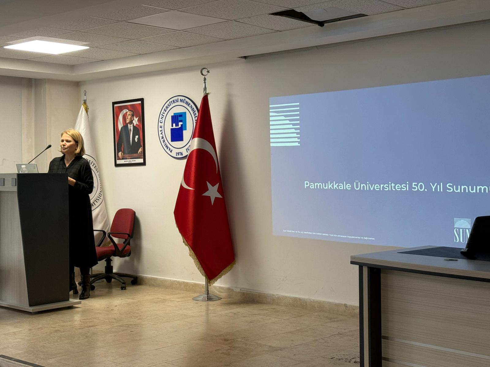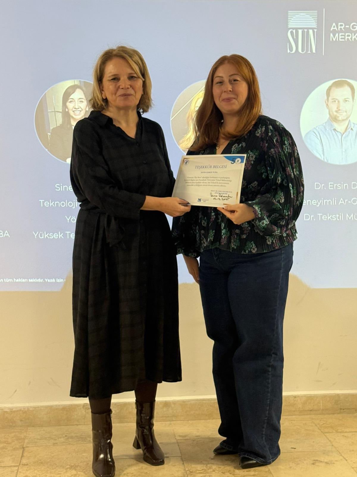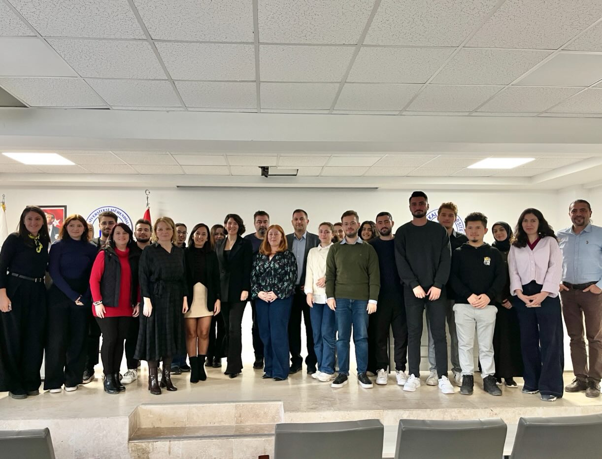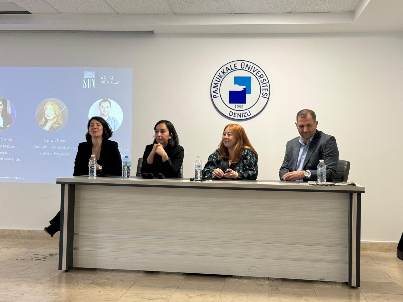 “Generate The Next” etkinliği gerçekleştirildi. Güncellenme Tarihi: 13 Aralık 2025 Fakültemizin kuruluşunun 50. yılında 50 etkinlik çerçevesinde 4 Aralık 2025 tarihinde Sun Tekstil Ar-Ge Merkezi'nin kıymetli yöneticileri ve uzmanlarının katılımları ile “Generate The Next” etkinliğini gerçekleştirdik. Değerli paylaşımları ve katılımları için Sayın Tuğçe Uysal’a , Sayın Sinem Öztürk’e, Sayın Gamze Tuna’ya ve Sayın Dr. Ersin Dobur’a tekrar teşekkür ediyoruz. Bu vesileyle, bölümüzün 2004 mezunu Dr. Ersin Dobur ve 2011 mezunu Sinem Öztürk’ü yeniden aramızda görmüş olmaktan büyük bir gurur duyduğumuzu da belirtmek isteriz. Verimli ve keyifli geçen etkinliğimizin ardından, Sun Tekstil Ar-Ge ekibi Tekstil Mühendisliği İplik ve Örme Laboratuvarını (Nit Örme Atölyesi) ziyaret ederek öğrencilerin yapmakta olduğu uygulamalı çalışmalar hakkında bilgi edindiler. Bölümümüz ve Sun Tekstil firması arasında işbirliğinin artarak devam etmesini diliyoruz.