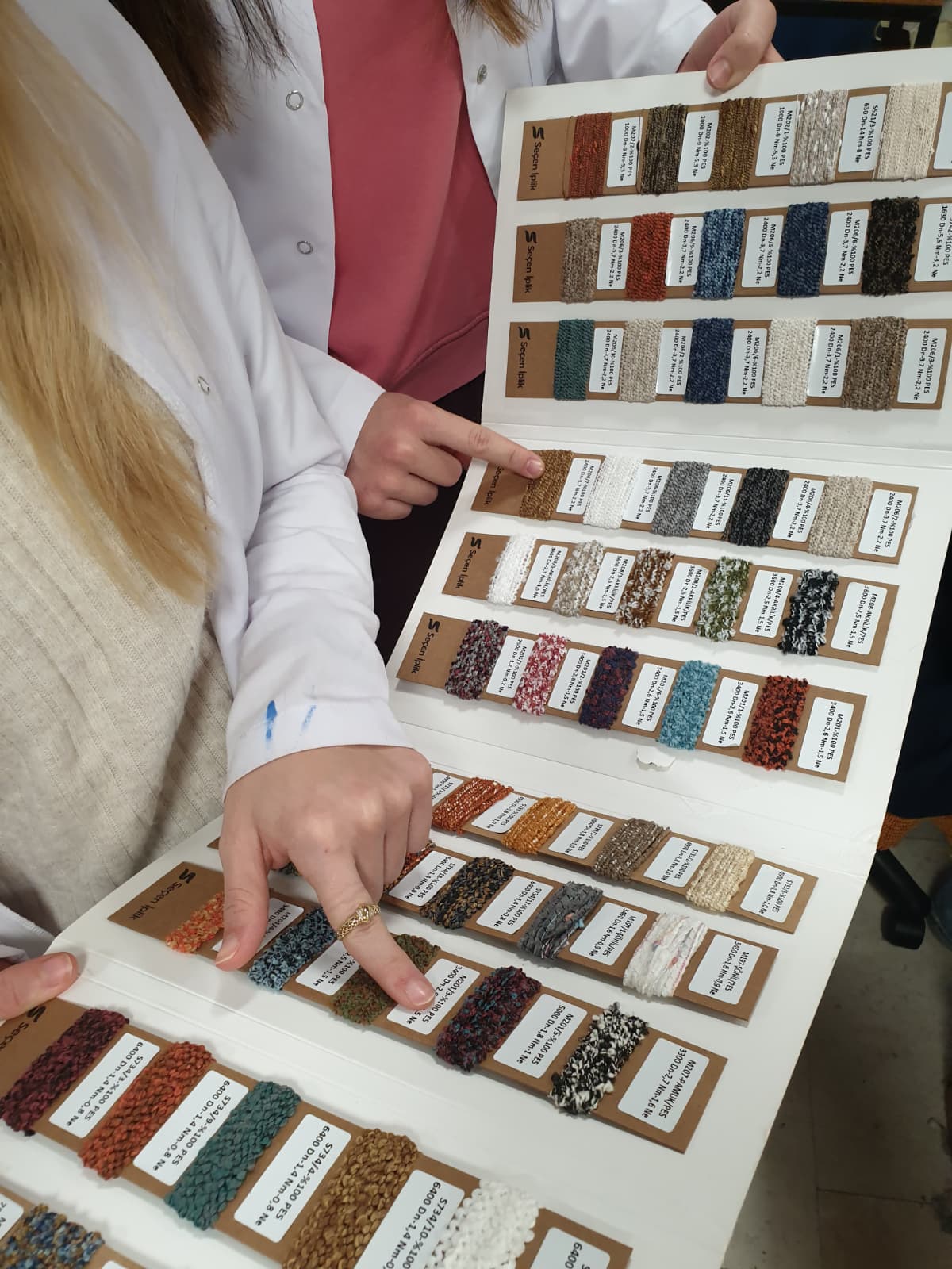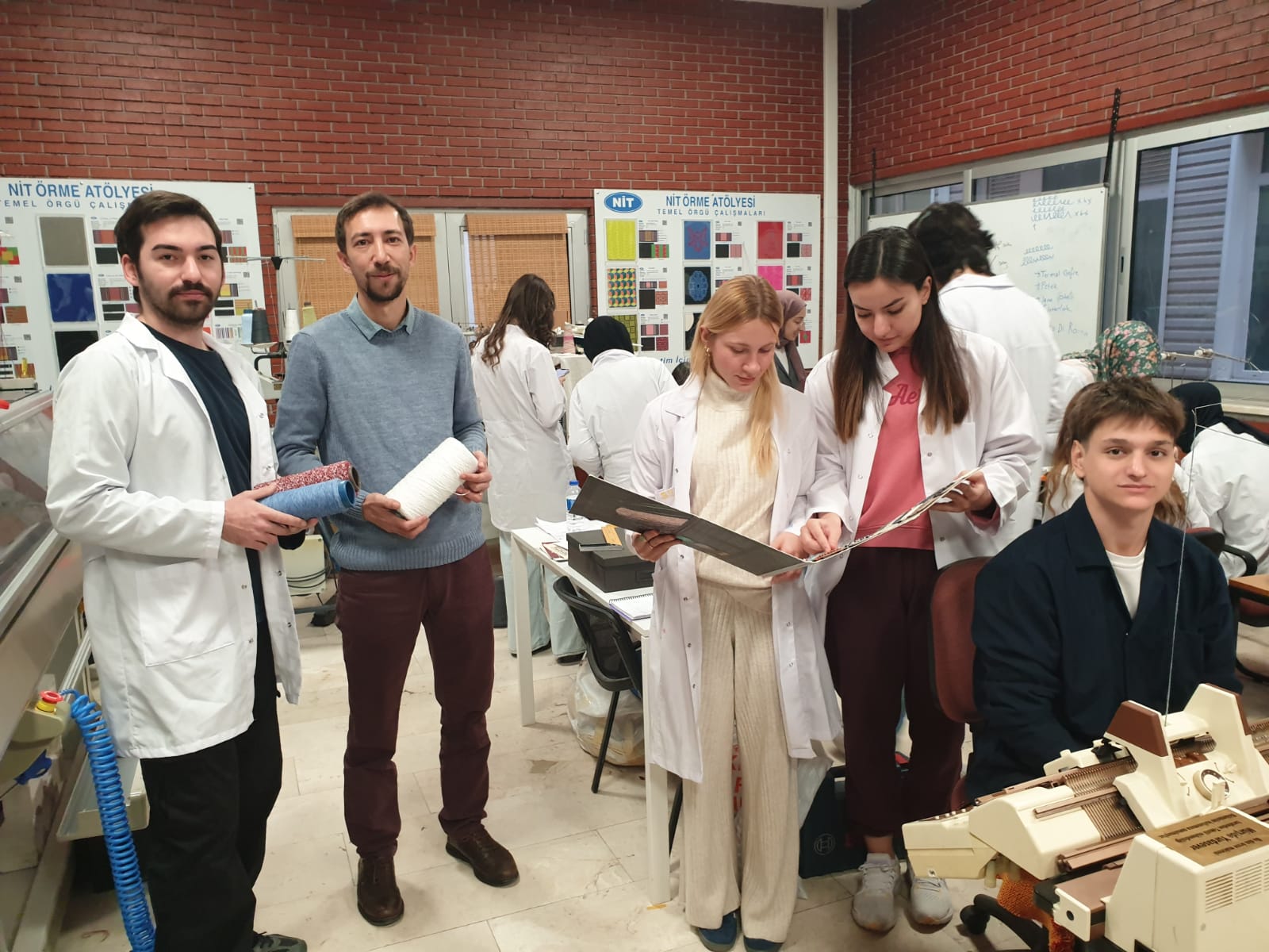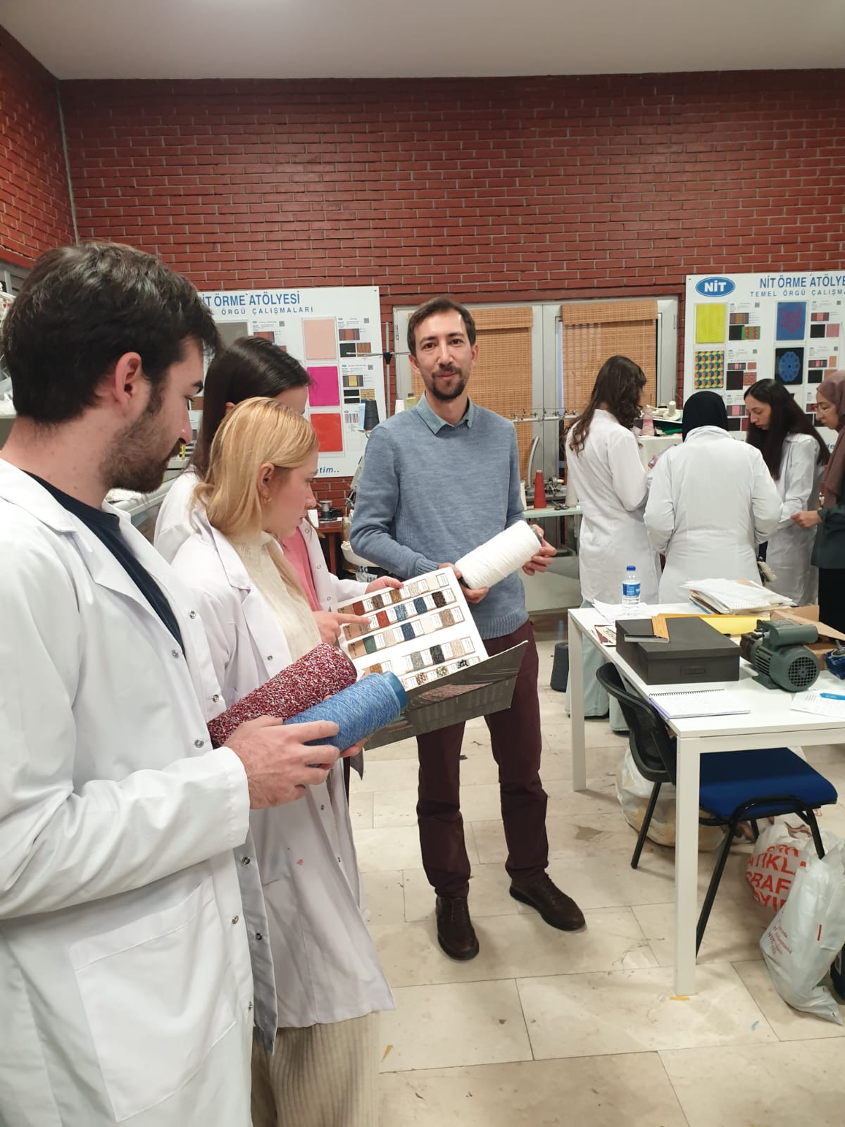 TENG 221 Genel Örme Teknolojileri dersi kapsamında uygulama çalışmaları devam ederken mezunlarımızdan Doğan Can Selamet bölümümüzü ziyaret etti. Beraberinde bükümlü viskon, bükümlü polyester ve fantazi iplik örnekleri de getiren Selamet, öğrencilere söz konusu ipliklerin özellikleri ve kullanım yerleri konusunda bilgi ve deneyimlerini aktardı.