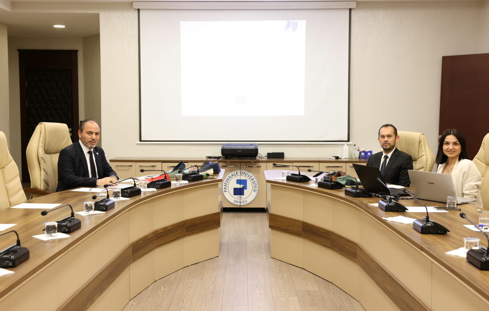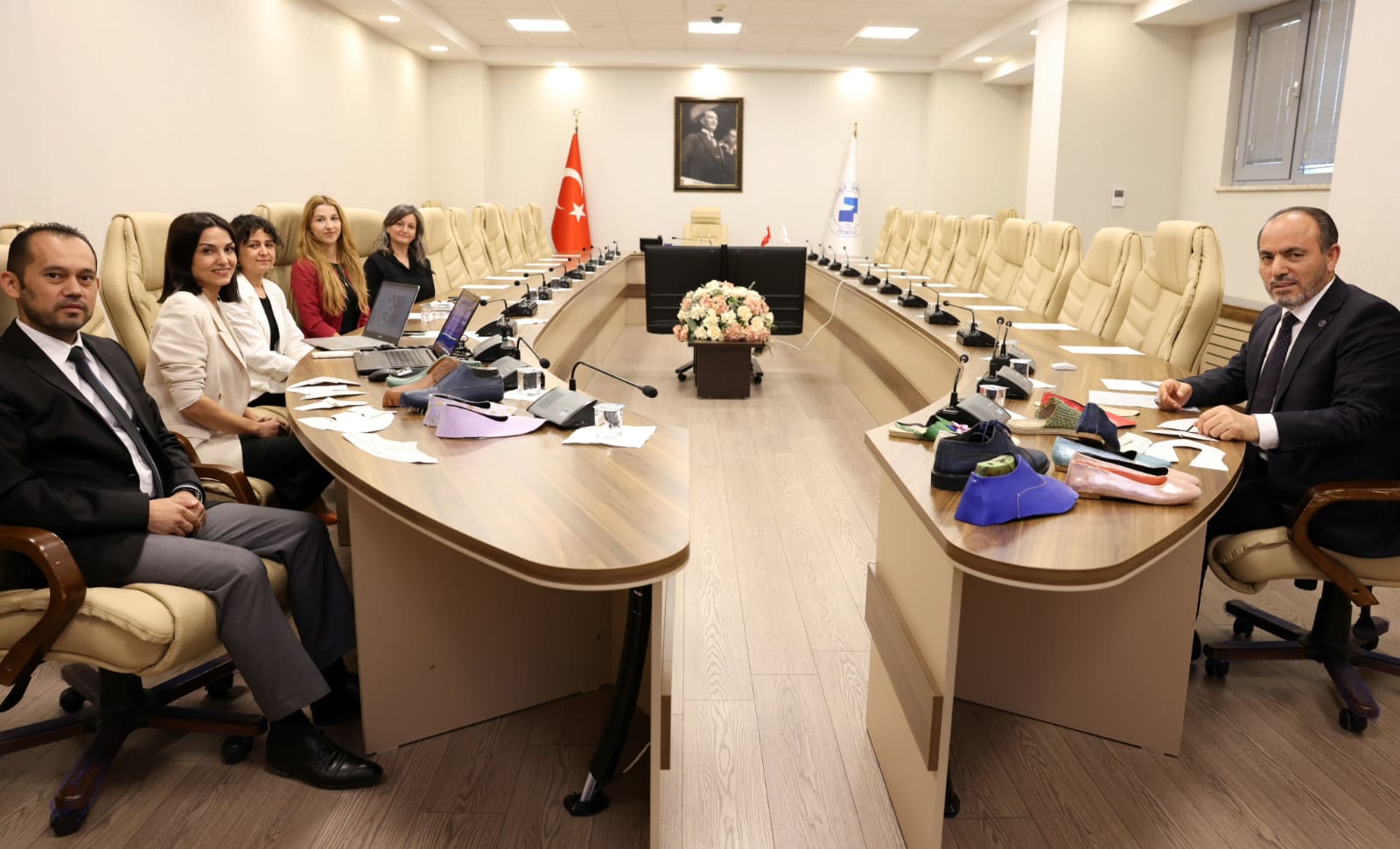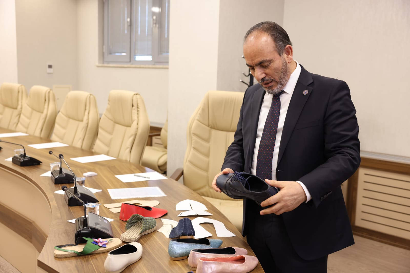 Pamukkale Üniversitesi Acıpayam Meslek Yüksekokulu Müdürü Doç. Dr. Ali Kurt, Müdür Yardımcısı Öğr. Gör. Atike Nur Durak, Tekstil, Giyim, Ayakkabı ve Deri Bölümü Ayakkabı Tasarım ve Üretimi Ön Lisans Programı Öğretim Görevlileri Dr. Özlem Yılmaz Karaboyacı ( Bölüm Başkanı), Aslıhan Tugan ve Fatma Filiz Yıldırım ile birlikte Üniversitemiz Rektörü Prof. Dr. Mahmud Güngör’ü ziyaret etti. Ayakkabı Tasarım ve Üretimi Programı’nın üretimleri, tasarımları hakkında bir sunum yapan bölüm hocaları, programın gelecek hedeflerini ve 2025-2026 Eğitim Öğretim Yılı için yapılan hazırlıkları da aktardı. Programın Acıpayam’ın Yeşilyuva mahallesinde geleneksel olarak asırlardır gerçekleşen ayakkabıcılık faaliyeti ile uyumu da ele alınırken, bu programın hem ilçeye hem de Yeşilyuva’ya artı değer kazandırma yolunda emin adımlarla ilerlediği de ifade edildi. Sektörle iş birliğinin Acıpayam MYO öğrencilerinin ve akademik personelinin gelişimi açısından da önemi vurgulandı.