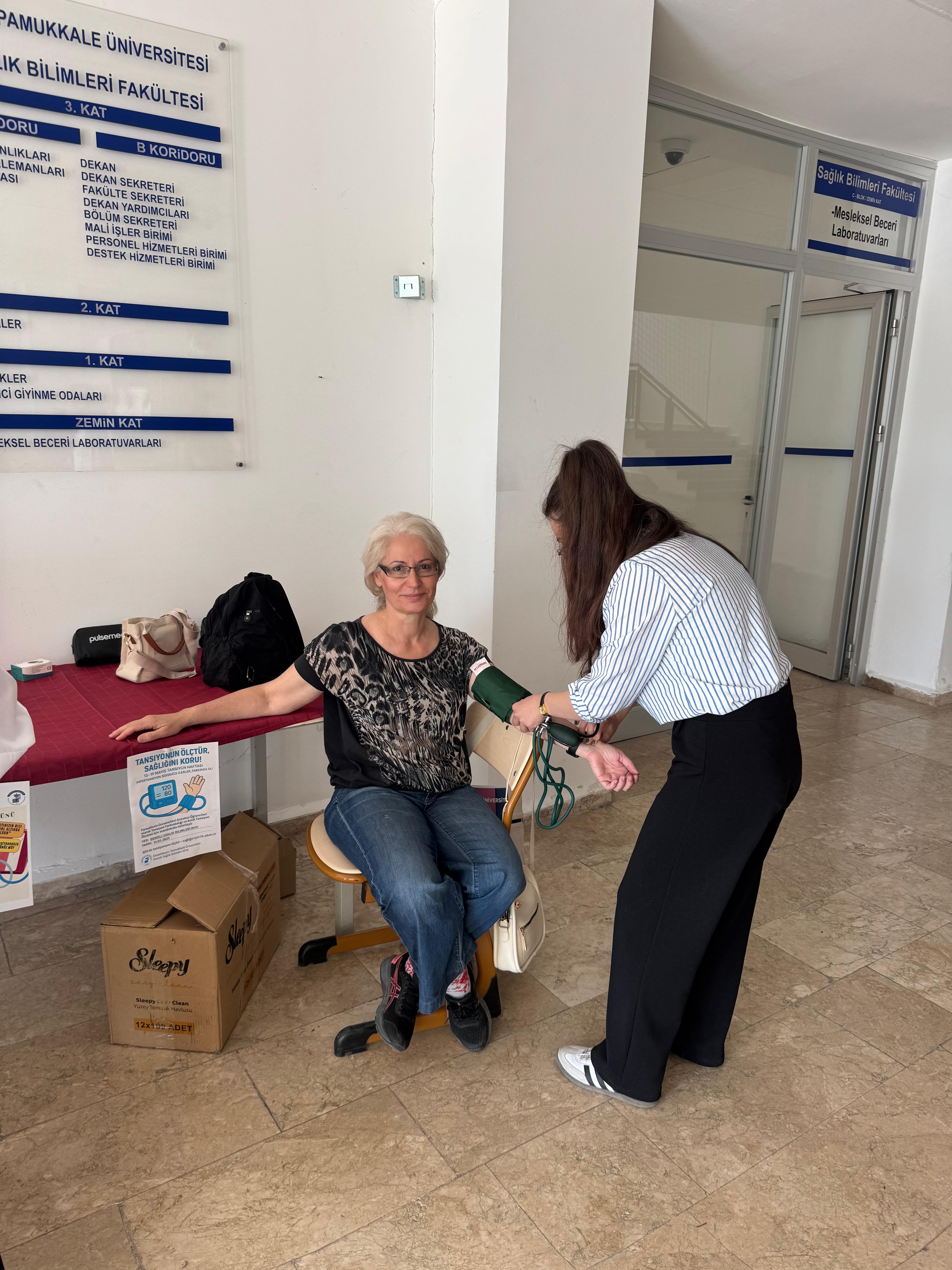 Pamukkale Üniversitesi Denizli Sağlık Bilimleri Meslek Yüksek Okulu girişine kurulan standlarda, anestezi bölümü öğrencileri idari, akademik personel ve öğrencilerin tansiyonunu ölçtü. Etkinlikte ölçümler ücretsiz yapıldı ve riskli değerlerde tansiyon ölçümü çıkan kişiler, ileri tetkik ve değerlendirme için hastanenin ilgili polikliniklerine yönlendirildi.