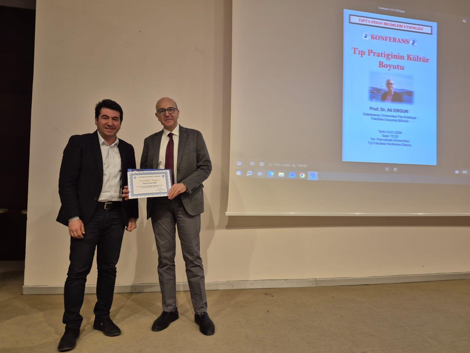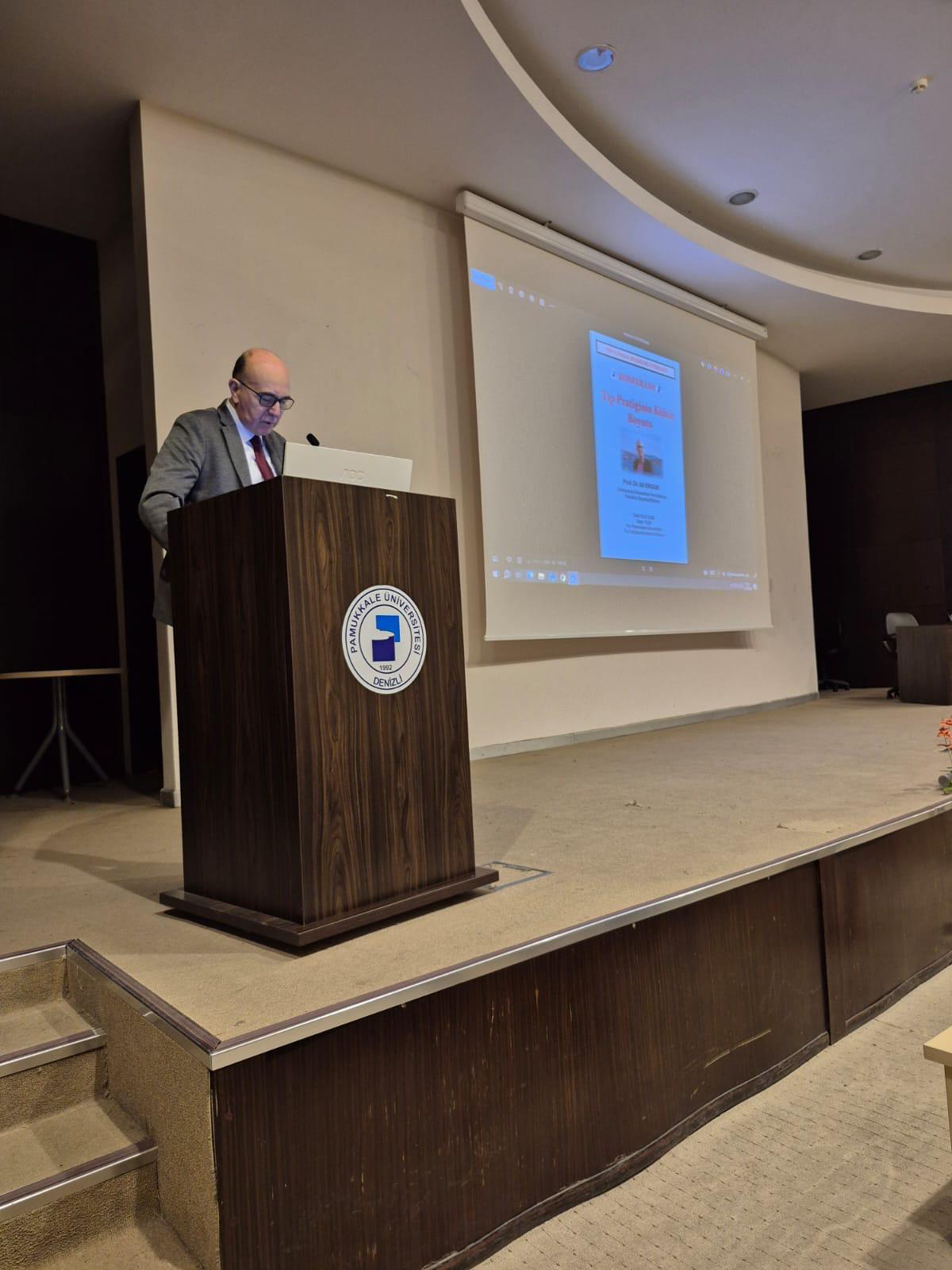 Pamukkale Üniversitesi Tıp Fakültesi, "Tıpta İnsan Bilimleri Etkinliği" kapsamında çok değerli bir buluşmaya ev sahipliği yaptı. 13 Ocak 2026 tarihinde düzenlenen etkinlikte, Galatasaray Üniversitesi Sosyoloji Bölümü öğretim üyesi Prof. Dr. Ali Ergur, "Tıp Pratiğinin Kültür Boyutu" başlıklı sunumuyla bizlerle bir araya geldi.