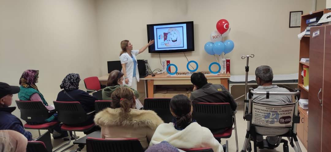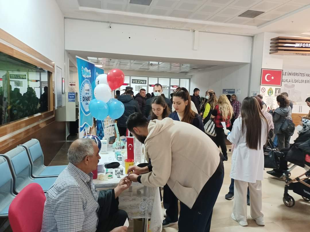 PAÜ Hastanesi’nde Dünya Diyabet Günü Kutlandı 14 Kasım Dünya Diyabet Günü nedeniyle PAÜ Hastanesi poliklinik girişinde düzenlenen etkinlikte hastaların kan şekerleri ölçüldü ve hastalara bilgilendirmeler yapıldı. Konuyla ilgili açıklamada bulunan Endokrinoloji ve Met. Bd. Başkanı Prof. Dr. Semin M.Fenkçi şu ifadelerde bulundu; 14 Kasım Dünya Diyabet Günü, insülinin keşfinde en önemli rolü oynayan Fredrick Banting’in doğum gününe atfen kutlanmaktadır. Diyabet tüm yaş gruplarını etkileyen toplumsal bir sağlık problemidir. Diyabetli bireyler, hastalıkla yaşamak ve olası komplikasyonlardan kaçınmak için sürekli tedavi ve bakıma ihtiyaç duyarlar. Fakat birçok diyabet hastası uygun zamanda uygun tedavi ve bakıma ulaşamamaktadır. Bazı bireyler ise diyabet olduğunun farkında olamamaktadır. 2022 Dünya Diyabet Günü için iki ayrı tema belirlenmiş durumdadır. Dünya Sağlık Örgütü temayı “Diyabet Tedavisi ve Bakımına Erişim” olarak ilan etmişken, bu alanın en önemli paydaşlarından olan Uluslararası Diyabet Federasyonu “Yarınları Korumak İçin Eğitim” temasını duyurmuştur. Prof. Dr. Fenkçi şöyle devam etti ; Diyabet hastalığına dikkat çekmek ve diyabet hakkında farkındalığı artırmak amacıyla biz de bugün 14 Kasım Dünya Diyabet Günü Etkinlikleri kapsamında diyabet stantı kurduk. Hastalara diyabet ile ilgili bilgi verdik. Kan şekeri ölçümleri yaptık. Broşür dağıttık. 14 Kasım dünya diyabet günü diyabetlilere, primer tedavisini ve takibini yapan doktorlara, sağlık personeline ve onların sağlık çözümüne katkı sağlayan herkese kutlu olsun dedi ve erken teşhisin önemini vurguladı. Gün boyunca hasta ve hasta yakınlarının kan şekerlerinin ölçülmesi ve toplu fotoğraf çekilmesi ile etkinlik son buldu.