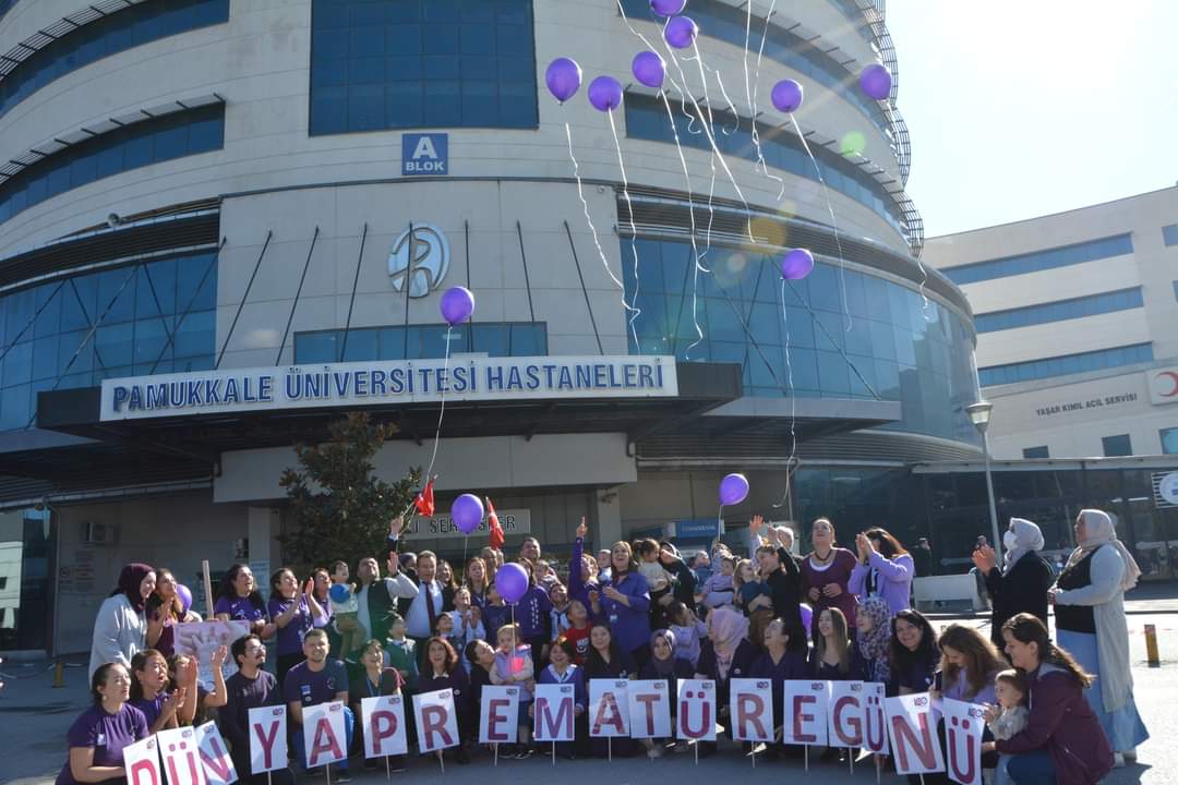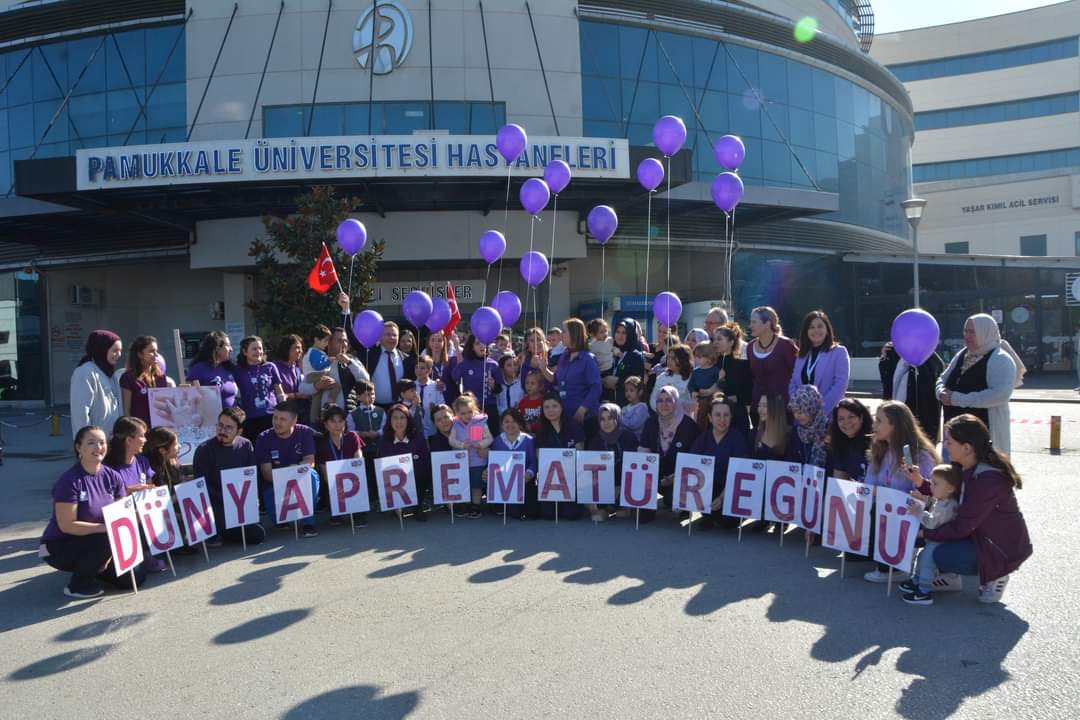 PAÜ Hastanesinde Dünya Prematüre Günü Kutlandı Prematüre bebeklerin yaşama tutunma mücadeleleri, aileleri ve kendilerinin yaşadığı zorluklara yönelik farkındalık oluşturmak amacıyla her yıl 17 Kasım’ da Dünya Prematüre Günü kutlanmaktadır. PAÜ Hastanesi sergi salonunda 17 Kasım Dünya Prematüre Günü farkındalığı Yenidoğan Yoğun Bakım Ünitesinde yatan bebeklerin aileleri, prematüre doğup tarafımızca taburcu edilen çocuklar ve aileleri ile birlikte Yenidoğan ekibi, Başhekimlik, Başmüdürlük, Başhemşirelik ve birçok sağlık personeli ve hekimlerin katılımıyla kutlandı. Neonatoloji Bilim Dalı Başkanı Prof. Dr. M.A. Özmert Özdemir yaptığı açılış konuşmasında şunları söyledi ; tüm dünyada ve ülkemizde pek çok bebek gebelik süreci tamamlanmadan, beklenen zamandan önce doğmaktadır. Gebelik döneminde anneye ve ya bebeğe bağlı sorunlar nedeni ile erken doğum görülebilir. Gebeliğin 37. haftasından önce doğan bebekler prematüre bebek olarak kabul edilir. Dünyada ve ülkemizde her 10 bebekten biri prematüre olarak doğmaktadır. Prematüre bebekler fiziksel ve sinirsel gelişimlerini tamamlamadan doğarlar. Zamanında doğan bebeklere göre daha hassaslardır ve daha sık sağlık sorunlarıyla karşı karşıya kalırlar. Doğum ne kadar erken olursa, sağlıkla ilgili riskler de o kadar artmaktadır. Bu hassas bebeklere sevgi ve bilgi ile dokunulması, donanımlı yeni doğan yoğun bakım ünitelerin olduğu merkezlerde dünyaya gelmeleri yaşam şanslarını da artırır. Bu bebeklerin taburculuk sonrası gelişimlerinin izlenmesi de önem taşımaktadır. Prematüre bebeklerin doğumdan okul çağı ve sonrasına kadar izlemine devam edilmelidir. Bu uzun yolda ailelerine ve bebeklerle ilgilenen farklı branşlardan tüm ekip üyelerine önemli işler düşmektedir. Başhekim Prof. Dr. Onur Birsen ise prematüre çocukların ne kadar zor koşullarda doğup büyüdüklerini ve bu zorlu yolda mücadele veren tüm ailelere ve Yenidoğan ekibine emekleri için teşekkür etti. Sağlıklarına kavuşmuş prematüre çocuklar Cumhuriyemizin 100.yılına özel şarkı söylediler. Hastanemizde 28 haftalık 1000 gr doğup sağlığına kavuşmuş üniversite sınavına hazırlanan Cennet Kahraman’ın büyük mücadeleler sonunda sağlıkla yaşamını sürdürebildiğini, bu süreçte emeği geçen PAÜ Yenidoğan ekibine teşekkürlerini sunarak Cumhuriyetimizin 100.yılında ülkesine faydalı bir türk genci olarak devam edeceğini belirterek prematüre gününü kutladı. Ardından Plaza binasının önünde tüm prematüre bebekler için mor balonlar uçuruldu.