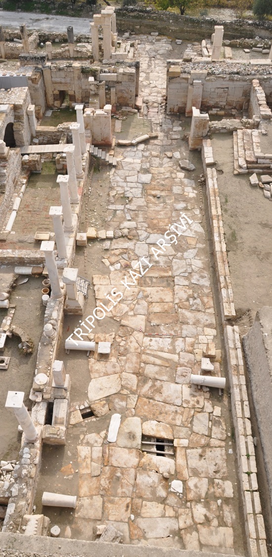 Hierapolis Street, which intersects at a right angle the east-west Colonnaded Street, was built in the Early Roman period together with it. Four travertine piers (Fig. 1) were built at the intersection of Hierapolis and Colonnaded Streets in the Roman Imperial period creating a monumental entranceto the city centre.