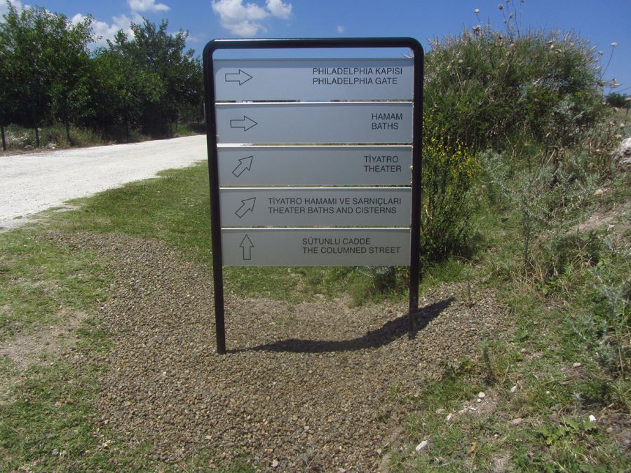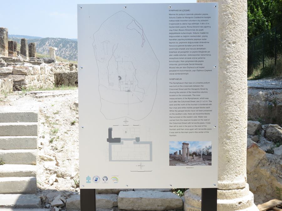 The project “Conservation and Publicity of the Ancient City of Tripolis” prepared jointly by Denizli Provincial Directorate of Culture and Tourism and Tripolis Excavations Direction and supported by South Aegean Development Agency was completed on 27 June 2015. Within the frame of the concerned project a booklet in Turkish and English was prepared to provide correct information about the monuments of the city for the local and foreign visitors, who added up more than 4500 in 2015. Furthermore, signposts and info boards in accordance with the regulations of the Ministry of Culture and Tourism were put up along the visiting route and by the monuments whose excavations have been completed (Fig. 1) (Fig. 2) (Fig. 3) (Fig. 4).