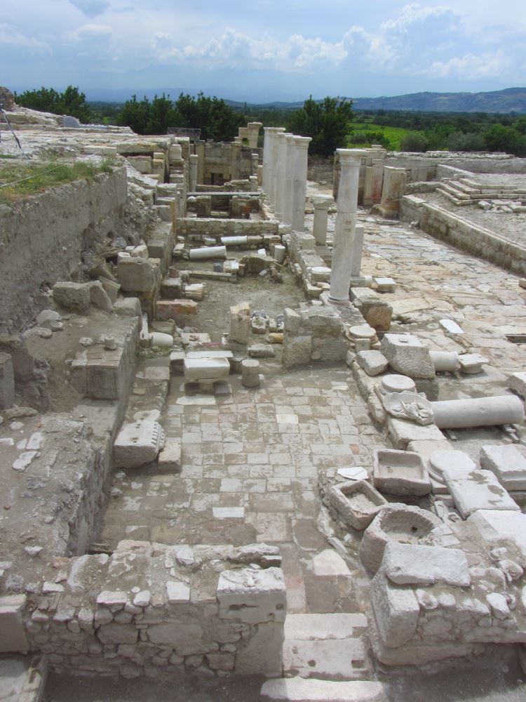 Travertine blocks furnished with a channel in the middle of their tops are placed lengthwise facing the street in order to drain the ground water of the agora adjoining the street on its west. These channels stretch northward as a continuation of channels on of the walls uncovered in the preceding years.