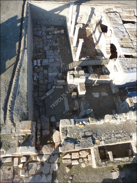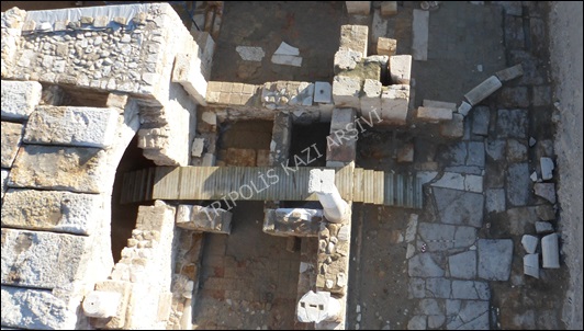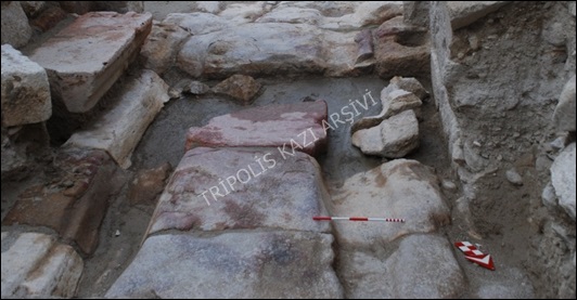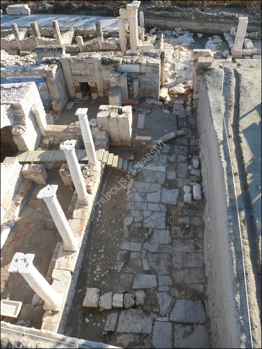 Erken Bizans Kilisesi 4 (EBK4)’ün, tuğla, traverten ve opus sectile döşemelerden oluşan giriş kısmı sokağın traverten blok zemini üzerine inşa edilmiştir.