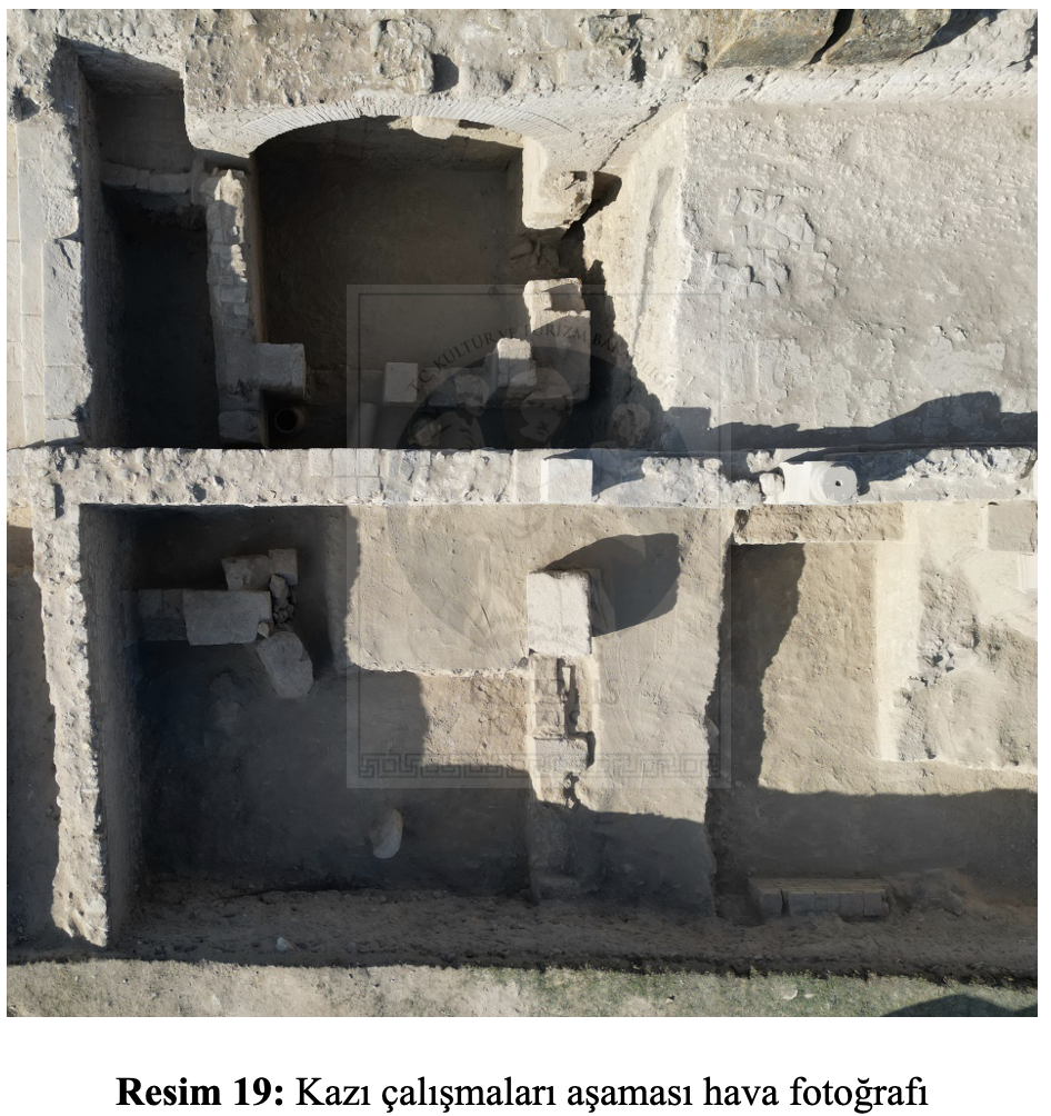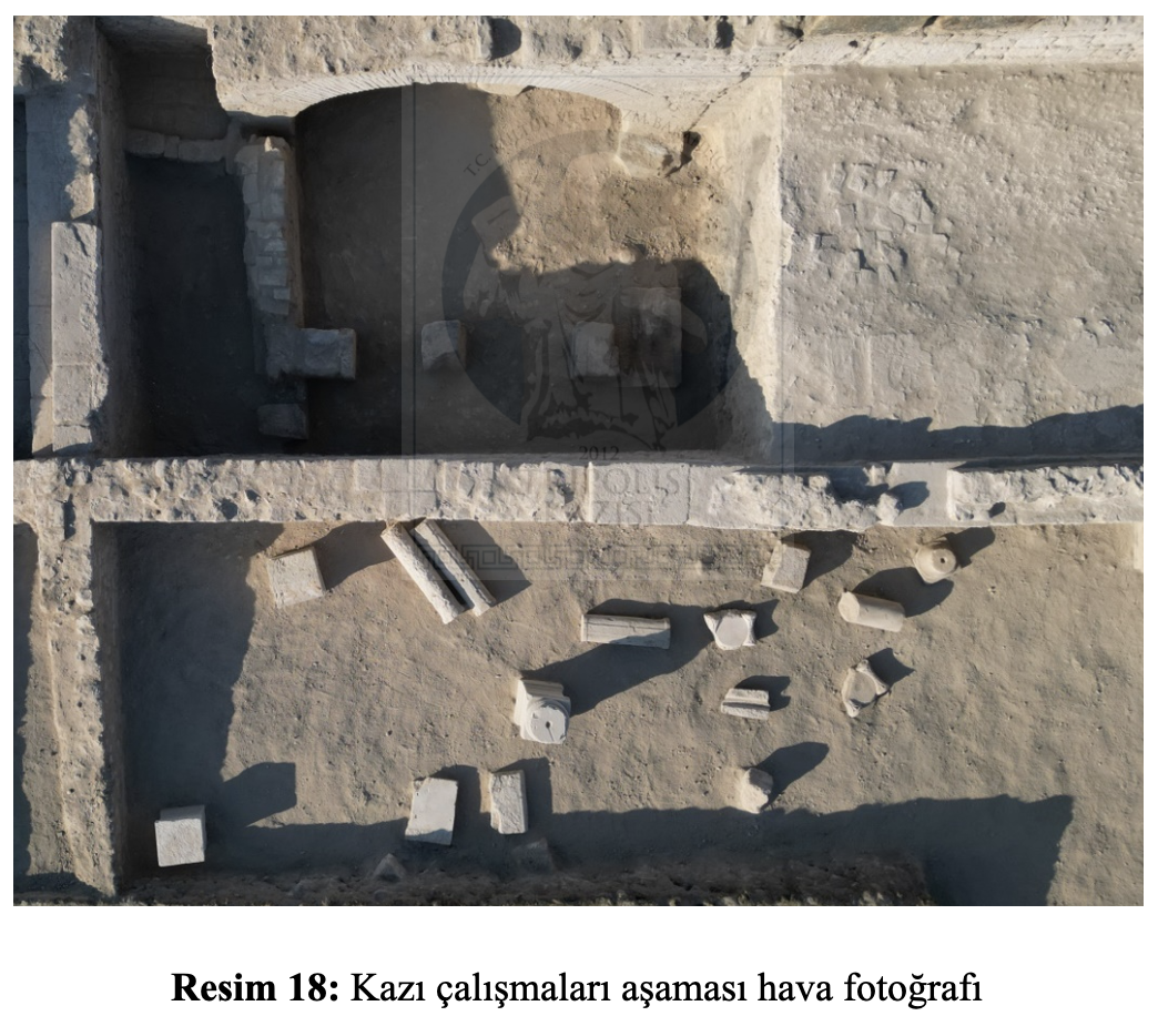 Koruma ve onarım çalışmaları ise Anıtsal Çeşme’de yapılmıştır. Bunun yanında yapılar içerisinde kazısı tamamlanan alanlarda restorasyon ve konservasyona yönelik basit onarım ve koruma faaliyetleri, periyodik bakım çalışmaları gerçekleştirilmiştir (Plan 1). Kazı laboratuvarında ise küçük buluntu gruplarının konservasyon çalışmaları yapılmıştır. Mimari, küçük buluntu ve seramik çizim çalışmalarına yıl boyunca devam edilmiştir. Kazı alanında ele geçen eserlerin belgeleme çalışmaları yapılmış, eserler; materyal özelliklerine ve kullanım amaçlarına göre ayrılmış, fotoğraflarla belgelendirilmiş ve veri tabanına büyük bir kısmı işlenmiştir.