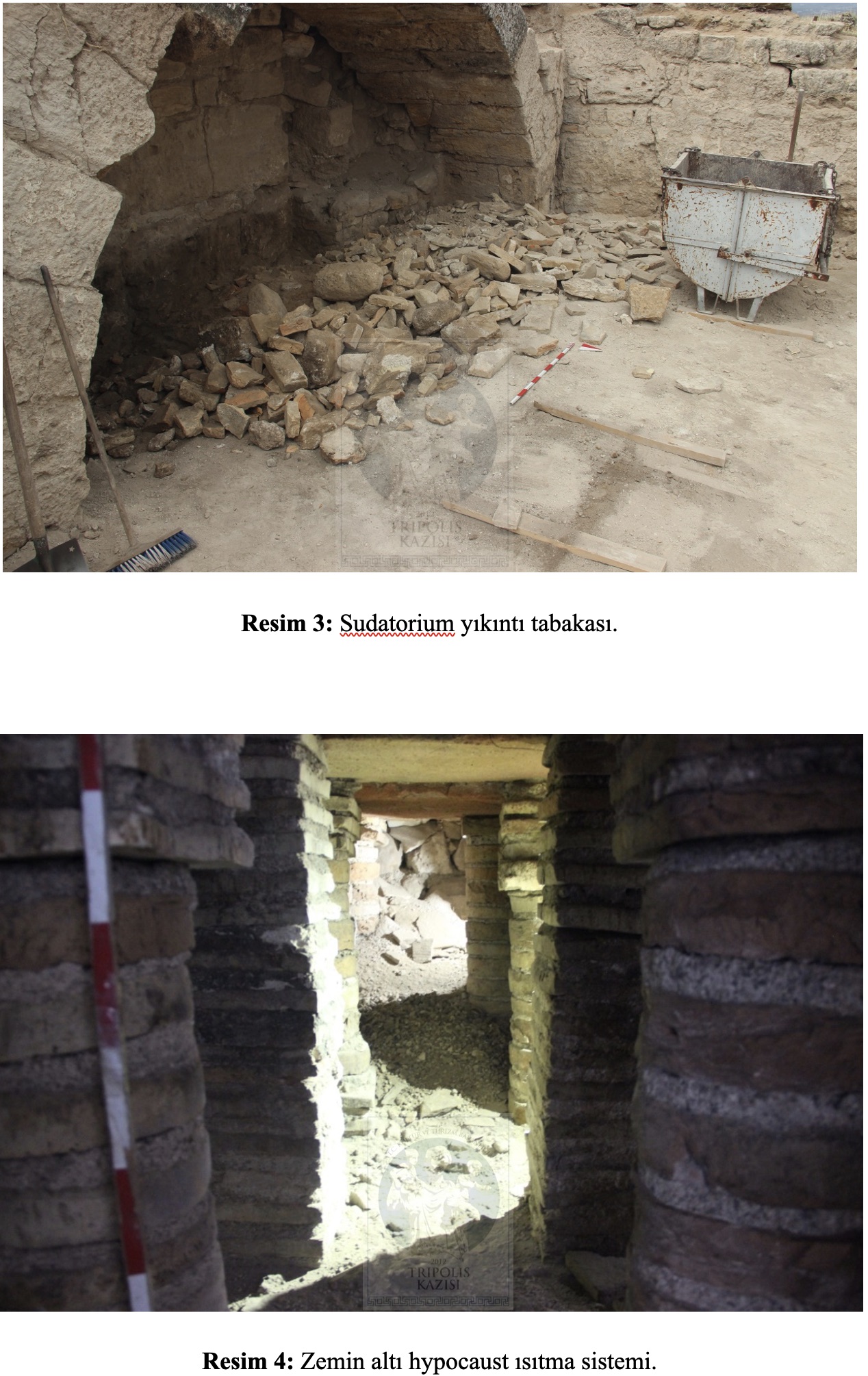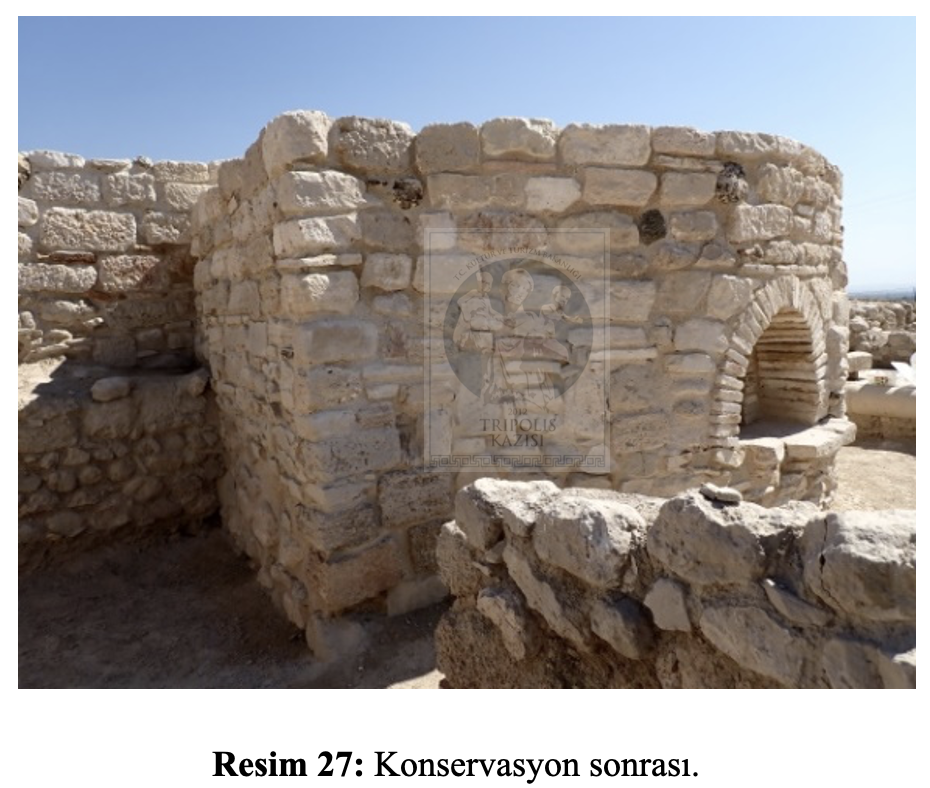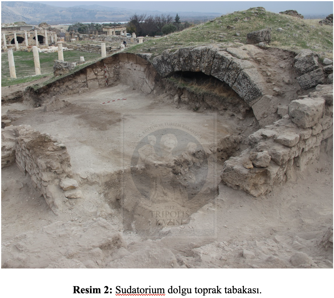 2024 yılında hamamın bölümlerini oluşturan; apoditerium (soyunmalık), frigidarium (soğukluk), tepidarium (ılıklık), calidarium 1 (sıcaklık) ve servis alanı olarak belirlenen salonlarda çalışmalar gerçekleştirilmiştir (https://www.pau.edu.tr/tripolis/tr/sayfa/2024-11). 2025 yılı kazı çalışmalarında ise sudatorium (terleme odası) ve calidarium 2 (sıcaklık) olarak belirlenen odalarda kazı çalışmaları gerçekleştirilmiştir.