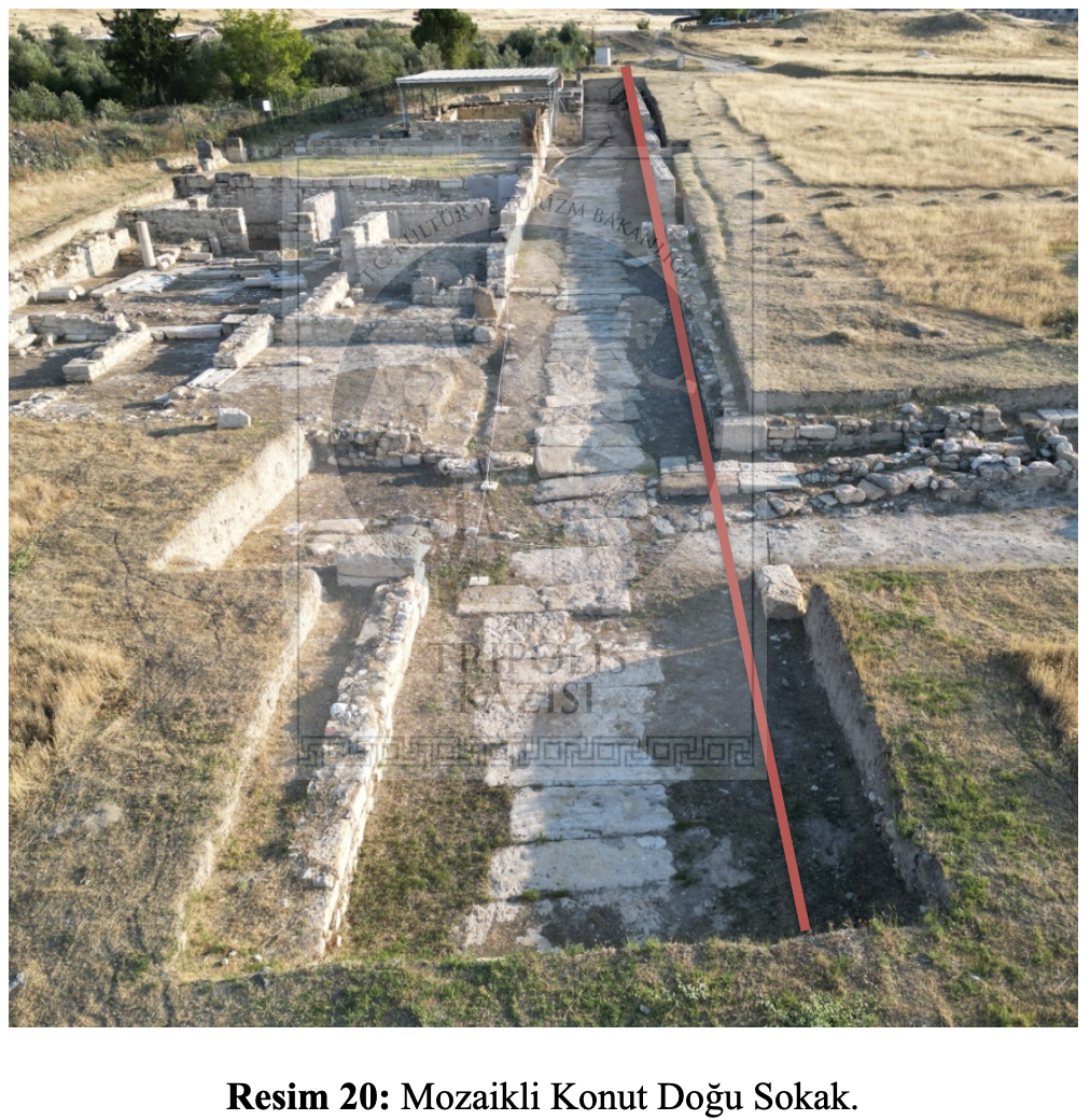Kentin merkezi konumunda yer alan kompleks yapı grubunun ortaya çıkarılmış olması, sivil mimariye ait yaşam alanlarının kentin farklı noktalarında oluşturulduğunu anlamamıza katkı sağlamıştır. Kentin güneydoğusunda yer alan ve 2013 yılında başlatılan, 2018 yılından itibaren de belirli aralıklarda kazı çalışmalarının yürütüldüğü alanda, sivil yaşamın şekillendiği konut mimarisini oluşturan yapılar ortaya çıkarılmış ve birbirini dik kesen sokakların etrafında yükselen konutların bulunduğu bu alan “Konut Alanı” olarak adlandırılmıştır (https://www.pau.edu.tr/tripolis/tr/sayfa/6-mozaikli-villa2013link). Kentin kamusal yapılarını çevreleyen ana sur duvarının dışında kalan bu alan, sivil halkın yaşadığı yer olarak düşünülürken, 2025 yılında kent merkezinde gerçekleştirilen çalışmalarla tespit edilen ve konut mimarisine ait yapının ortaya çıkarılmış olması, kentin kuzeydoğu bölümündeki bu alanda da sivil yaşama ait konut yapılarının inşa edilmiş olduğu ve tıpkı Konut Alanı’nda olduğu gibi birden fazla konutun var olduğu düşünülmektedir.