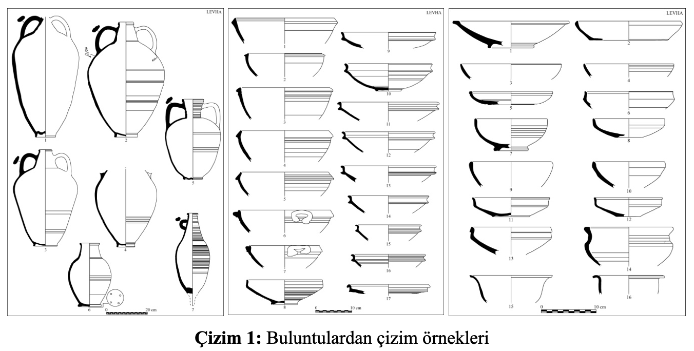 2025 yılı içerisinde gerçekleştirilen kazı, koruma ve onarım çalışmaları sırasında açığa çıkarılarak kayıt altına alınmış, tam, tama yakın ve kırık haldeki amorf malzemeden oluşan, materyali pişmiş toprak, cam, kemik, metal, taş ve organik olan buluntu gruplarının tamamının hem karakalem hem de dijital ortama aktarılarak çizim ve belgelendirme çalışmaları tamamlanmıştır. Buluntu numarası verilerek kayıt altına alınmış olan 719 eser, bunların yanı sıra, amorf nitelikte bulunarak parça numarası verilmiş pişmiş topraktan yapılmış 6887 adet kap-kacak parçasının da çizim ve belgelendirme çalışmaları tamamlanmıştır (Çizim 1).